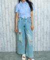 ハイウエストのデニムやパンツと合わせてスタイルアップを狙うのが鉄板!フレアスカートで甘めに、ショーパンでヘルシーに、タイトスカートで大人っぽくと、合わせるアイテム次第で印象チェンジも自在。羽織りを合わせればロングシーズン着回せる優秀アイテムです。