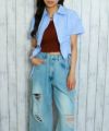 きちんと感のあるシャツデザインに、くしゅっとギャザーを効かせた今っぽアレンジが目を惹く1枚。フロントを開けても閉めてもサマになって、カジュアルにもキレイめにも振れる万能アイテムです!短丈でバランスも取りやすく、着るだけでこなれ感アップ◎