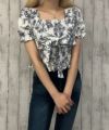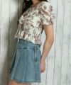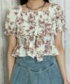 華やかでフェミニンなムードが漂う、花柄シャーリング半袖ブラウス♪