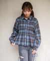 《微起毛チェック×ギャザー切替》レディース フリルシャツ 長袖 トップス 体型カバー 秋冬