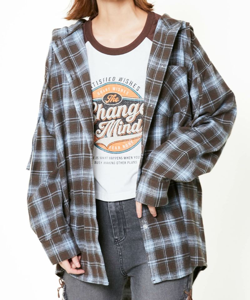 カジュアルなチェック柄とリラックス感のあるフードデザインで、1枚でも羽織りでも着回せます。