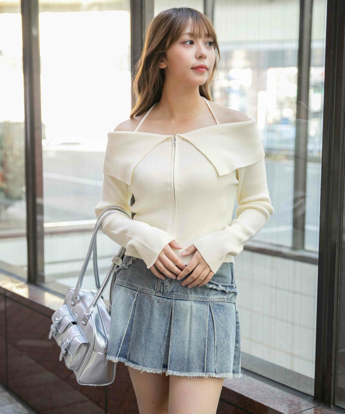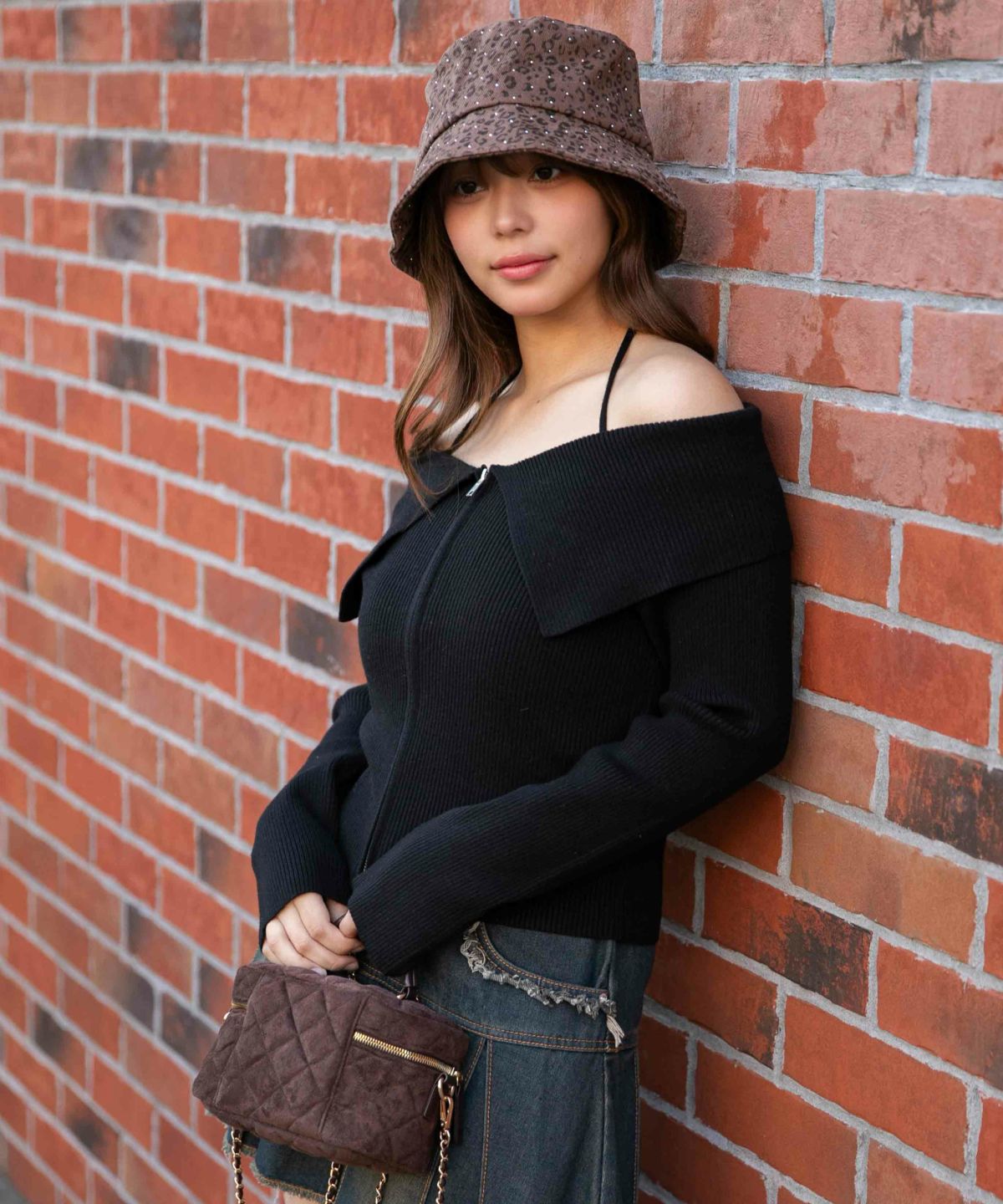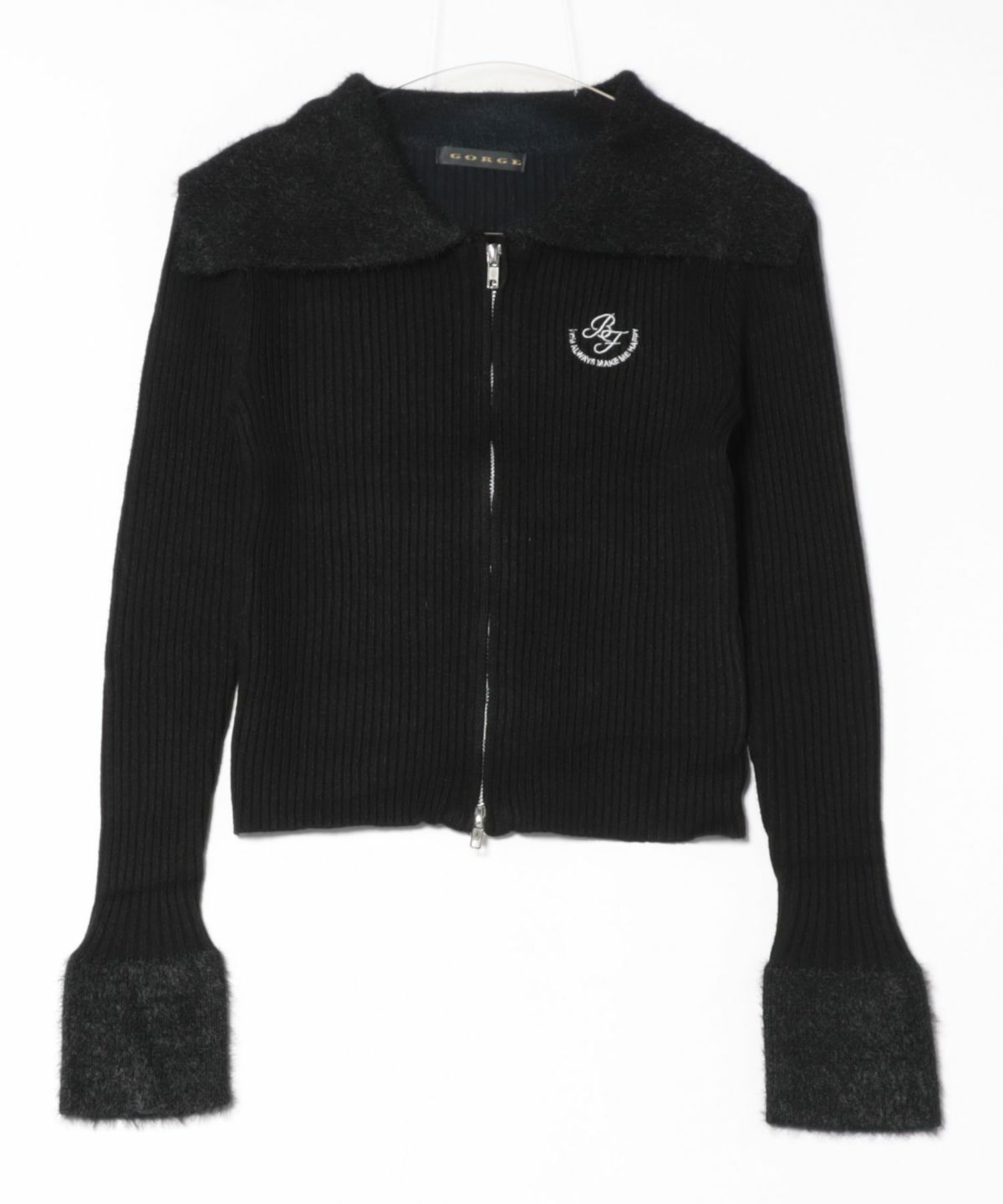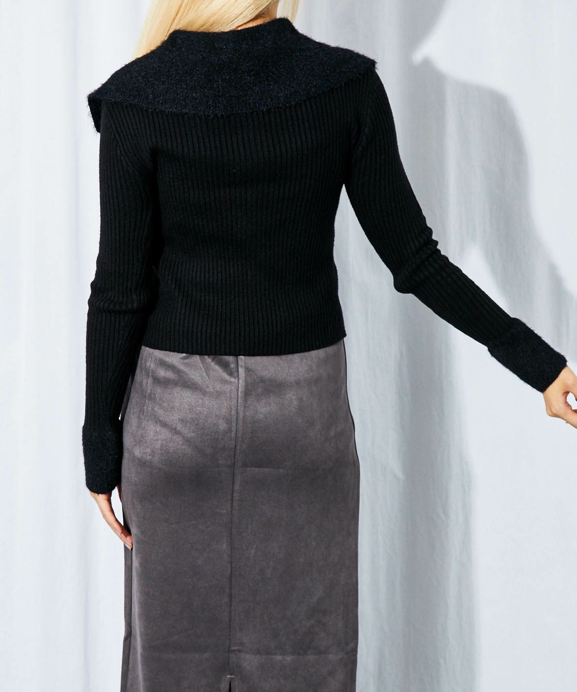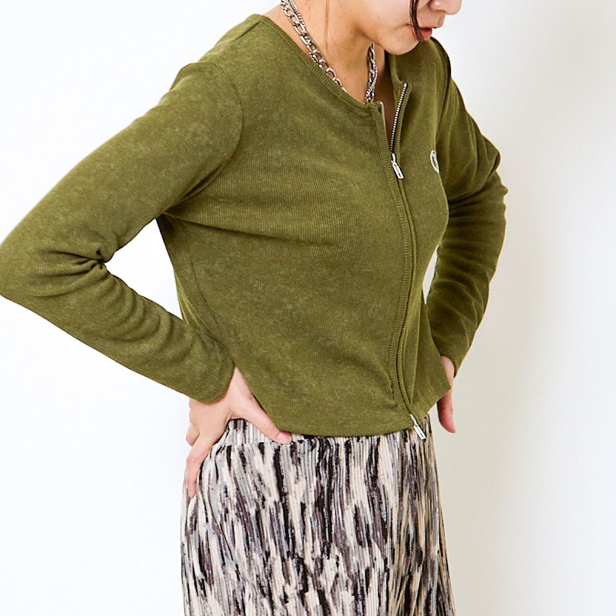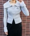 《デカ襟×ダブルジップ》大人可愛いリブトップス カーディガン