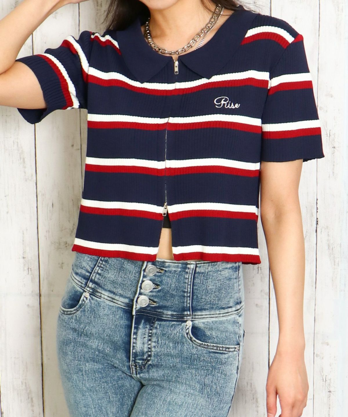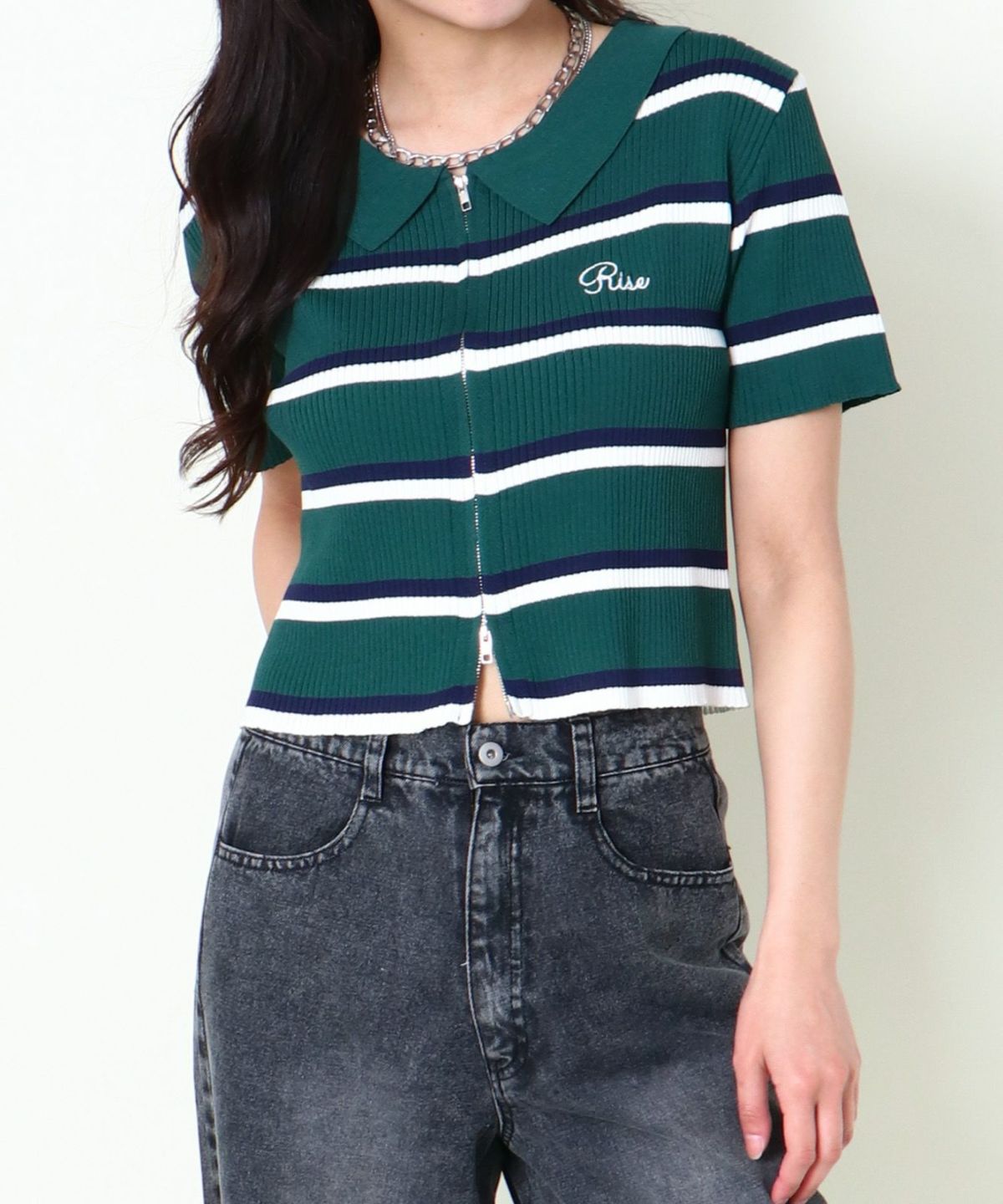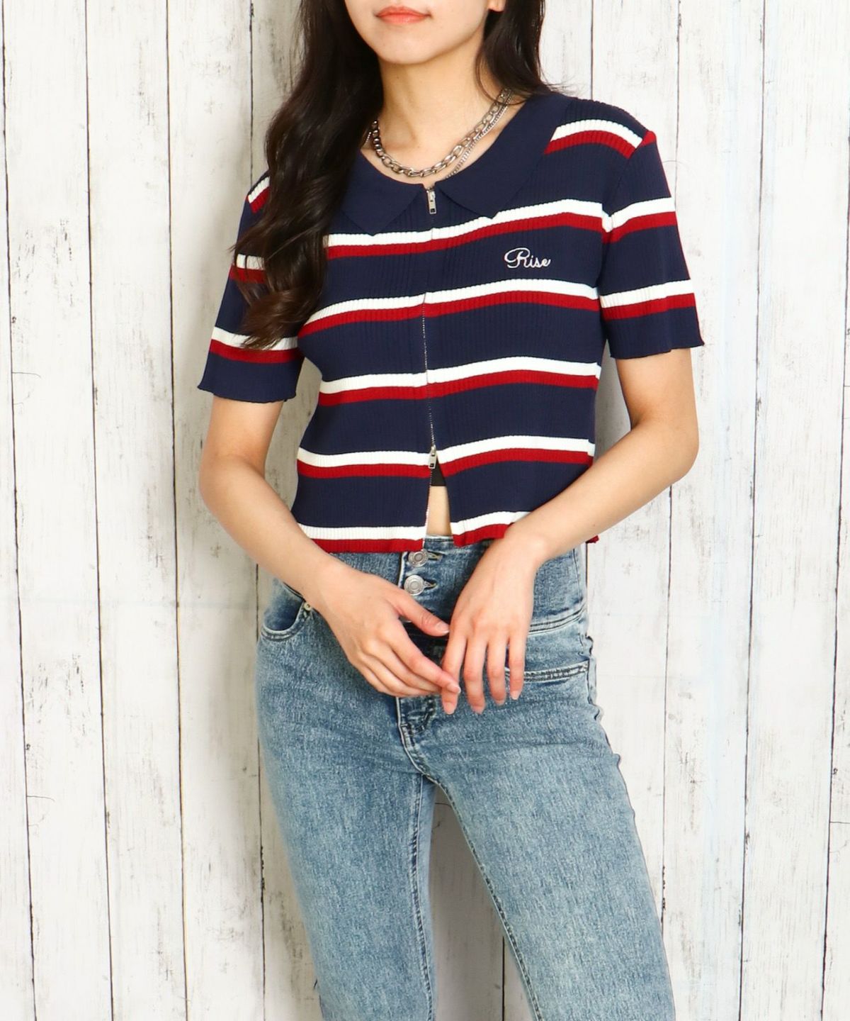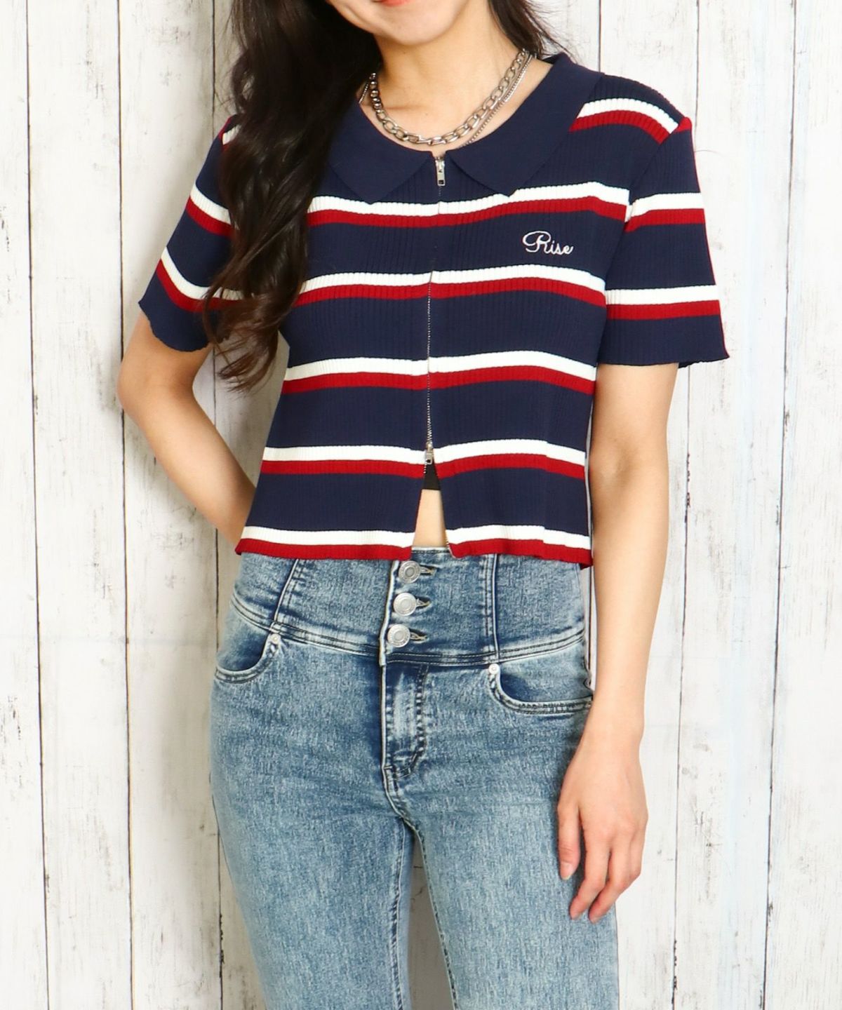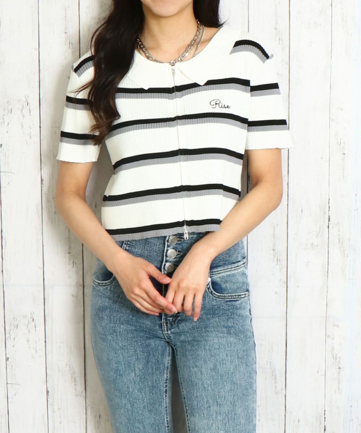 WZIPボーダー半袖カーディガン