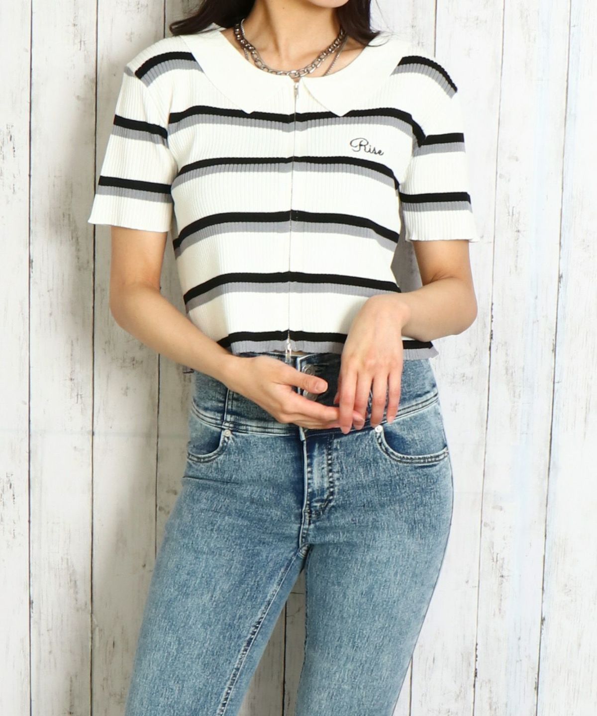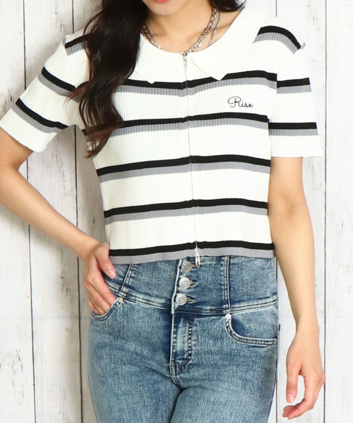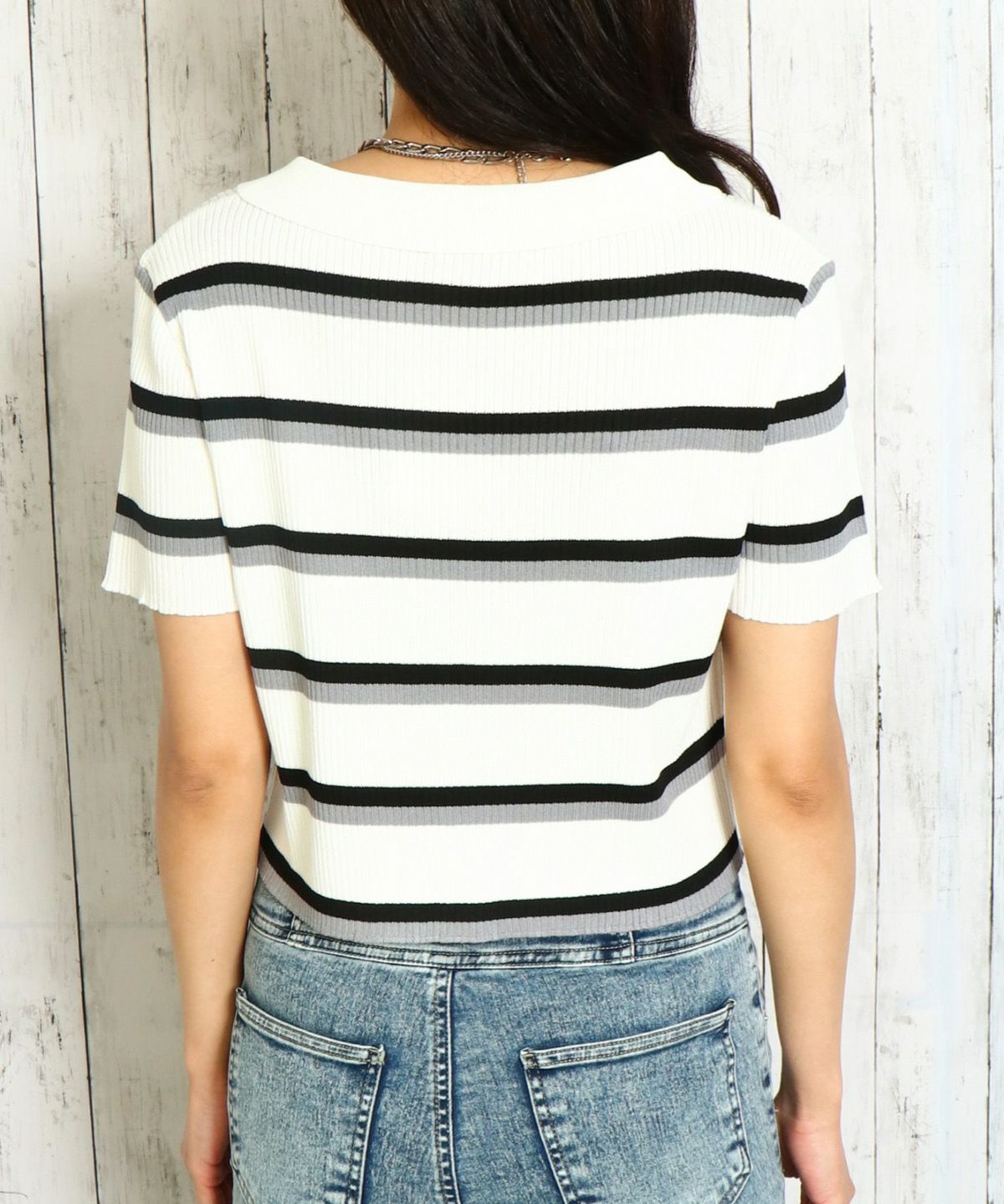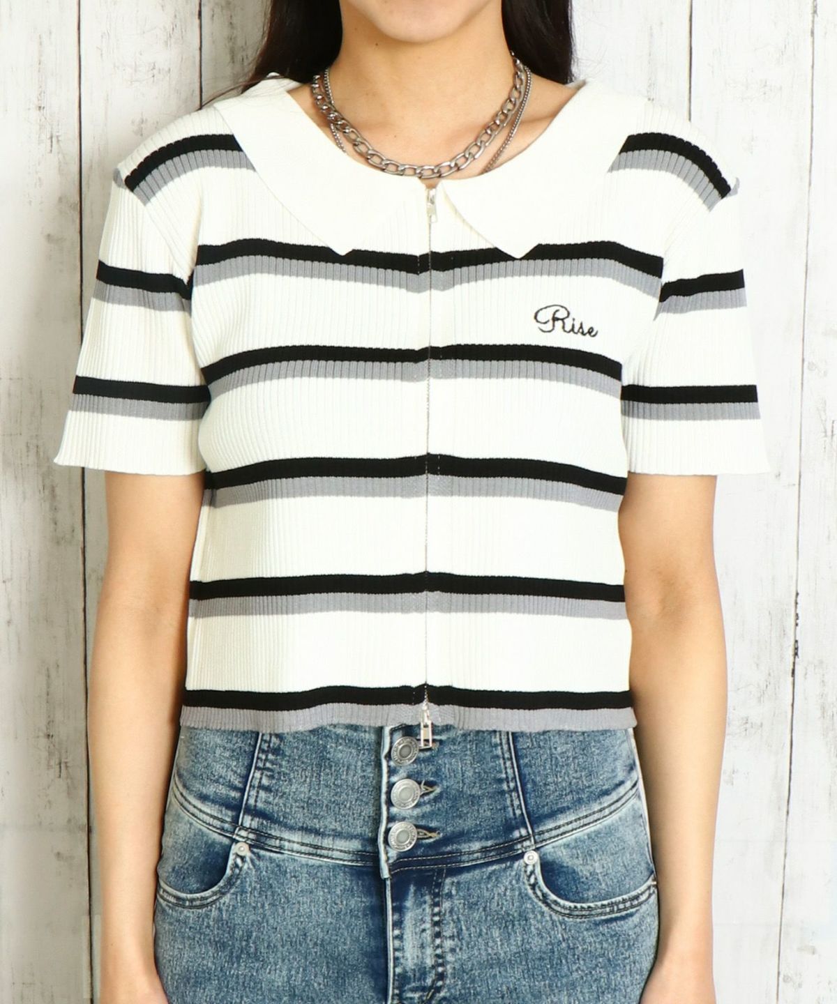 WZIPボーダー半袖カーディガン