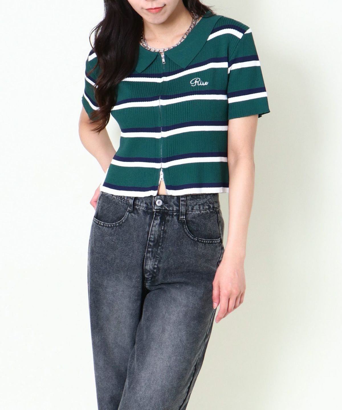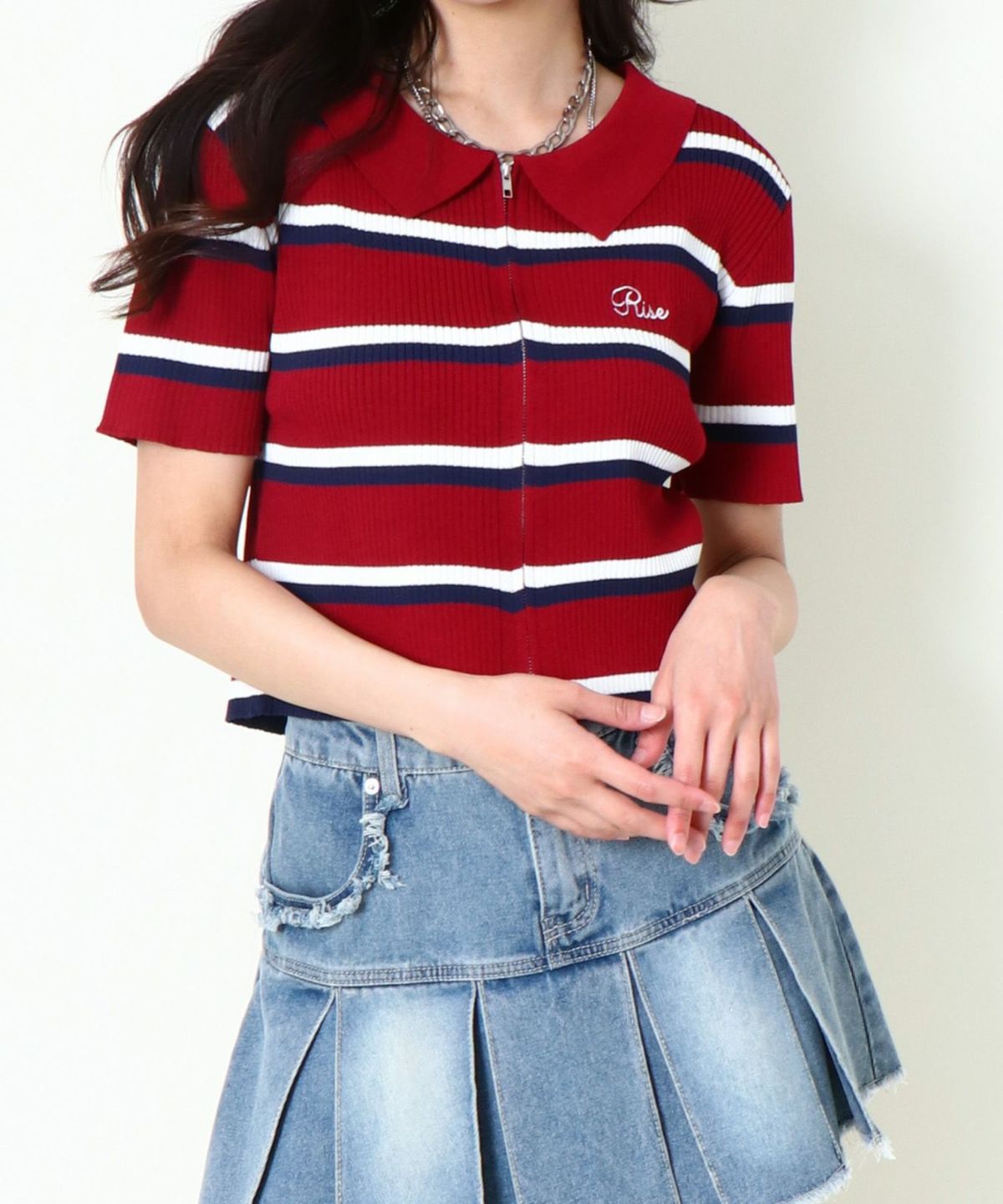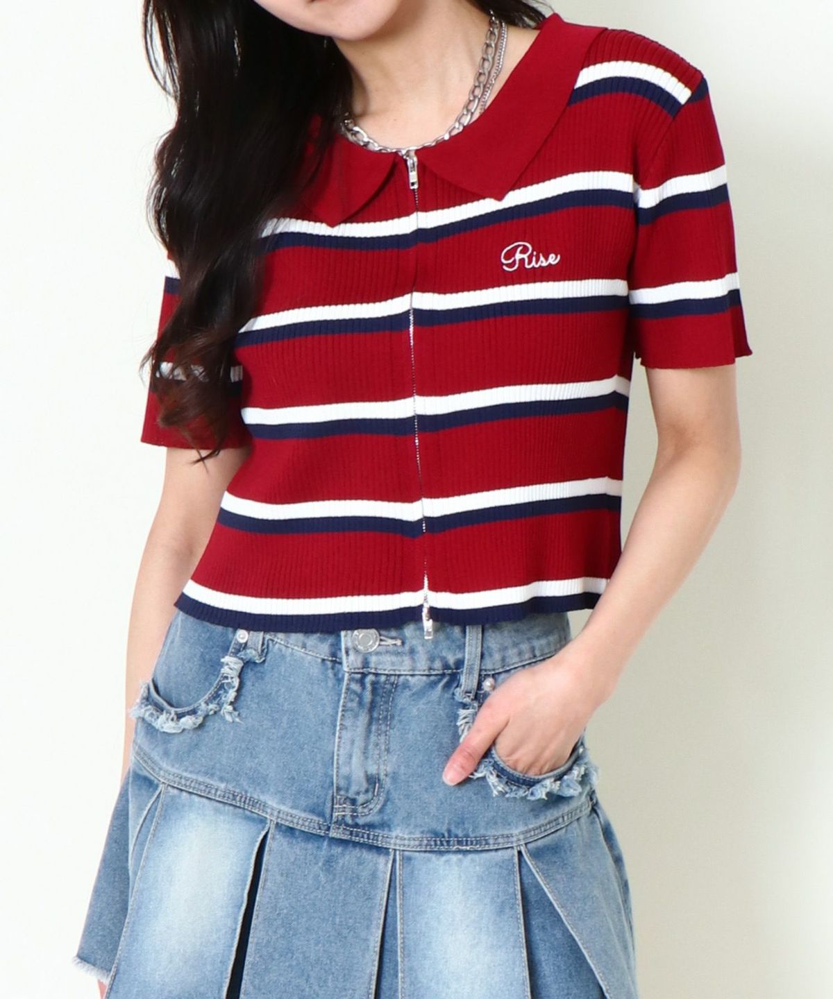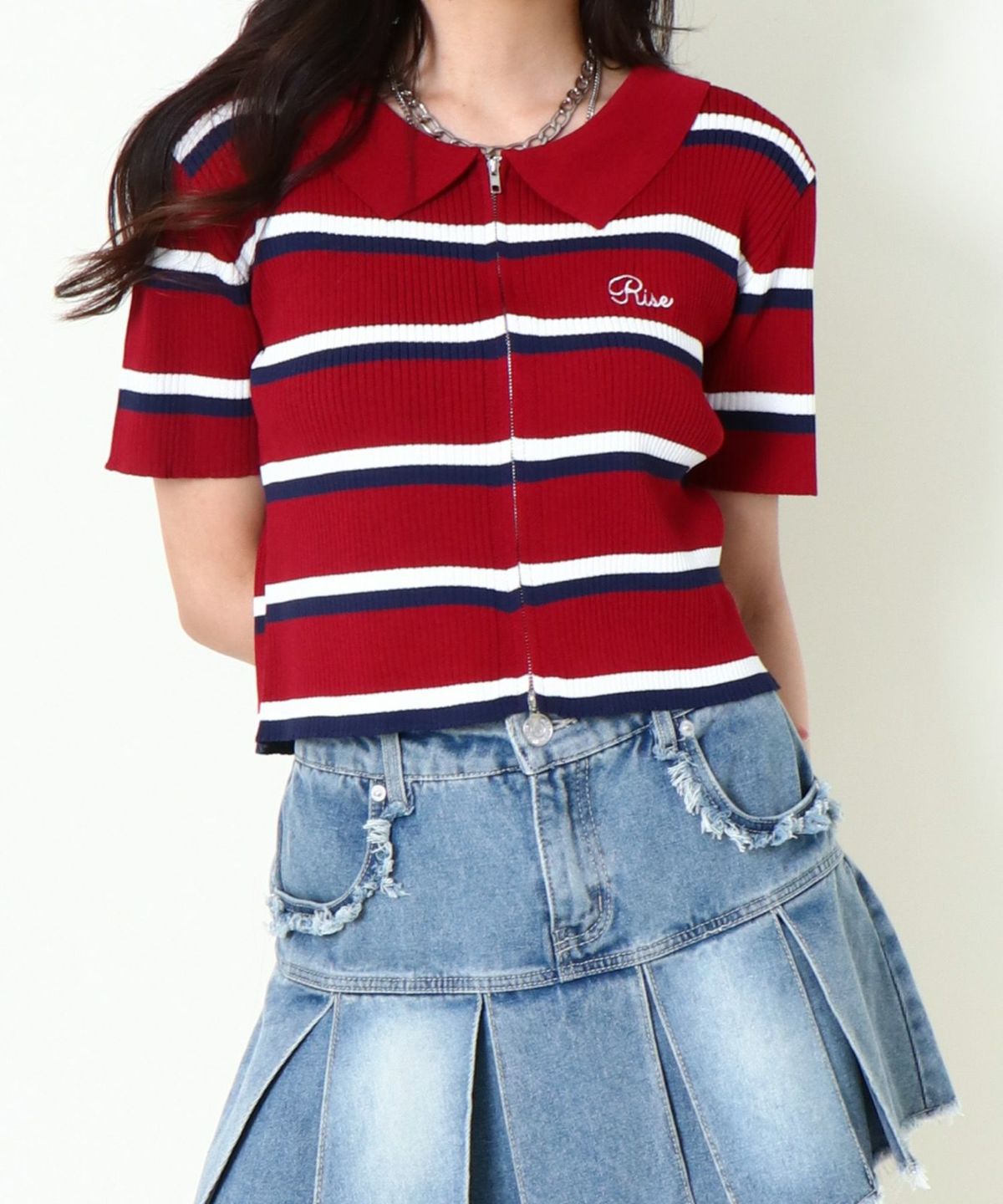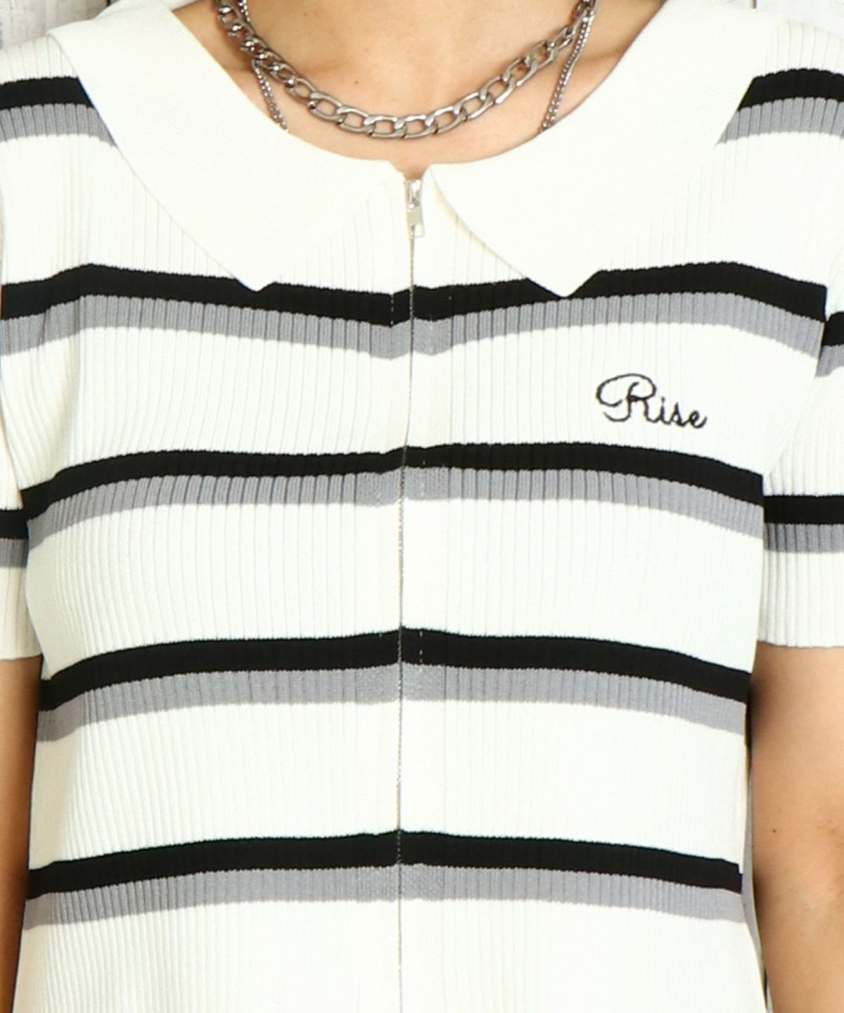 WZIPボーダー半袖カーディガン