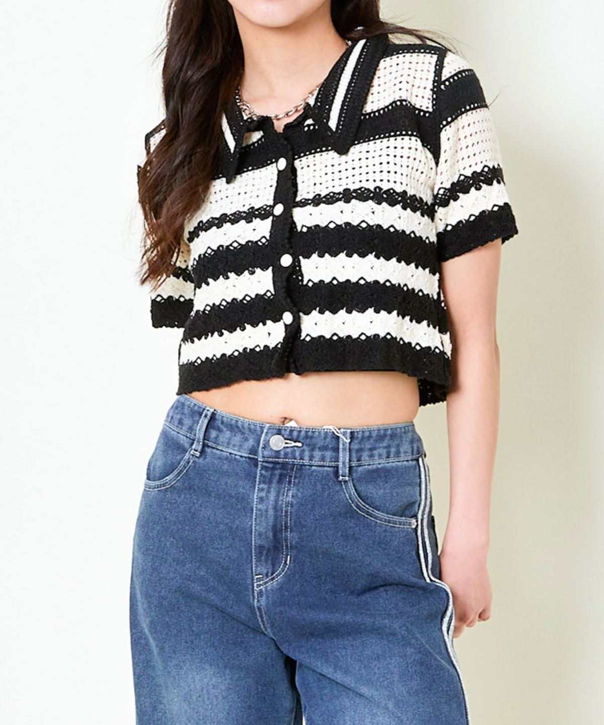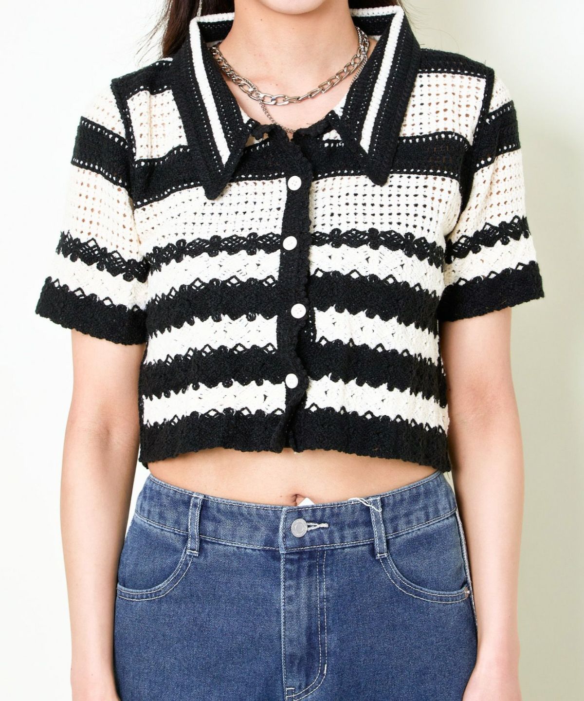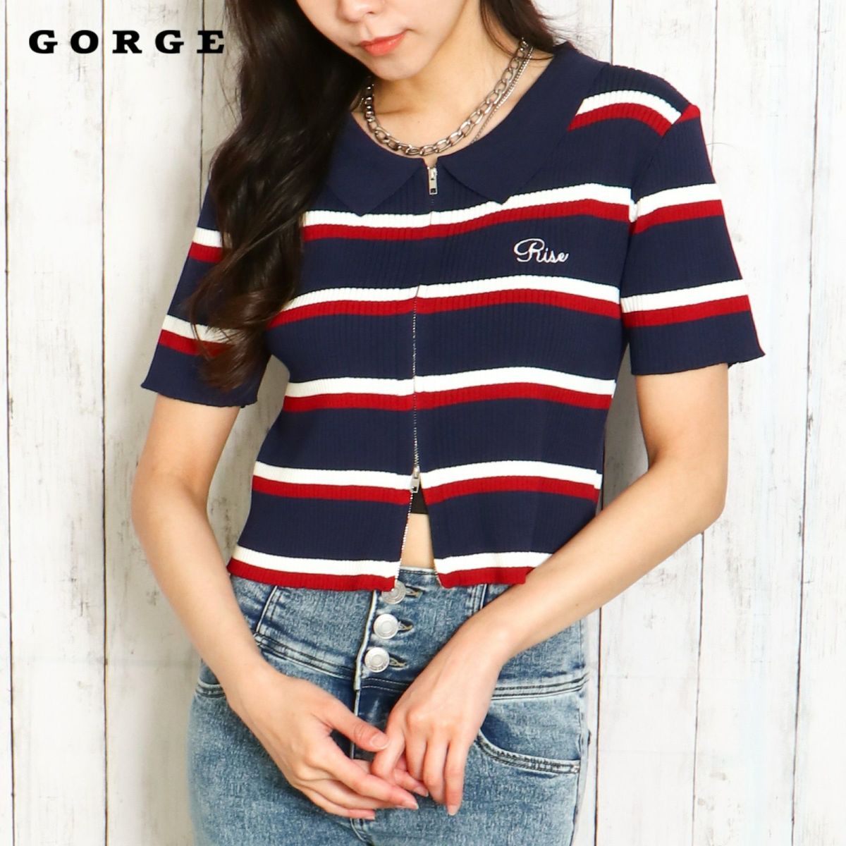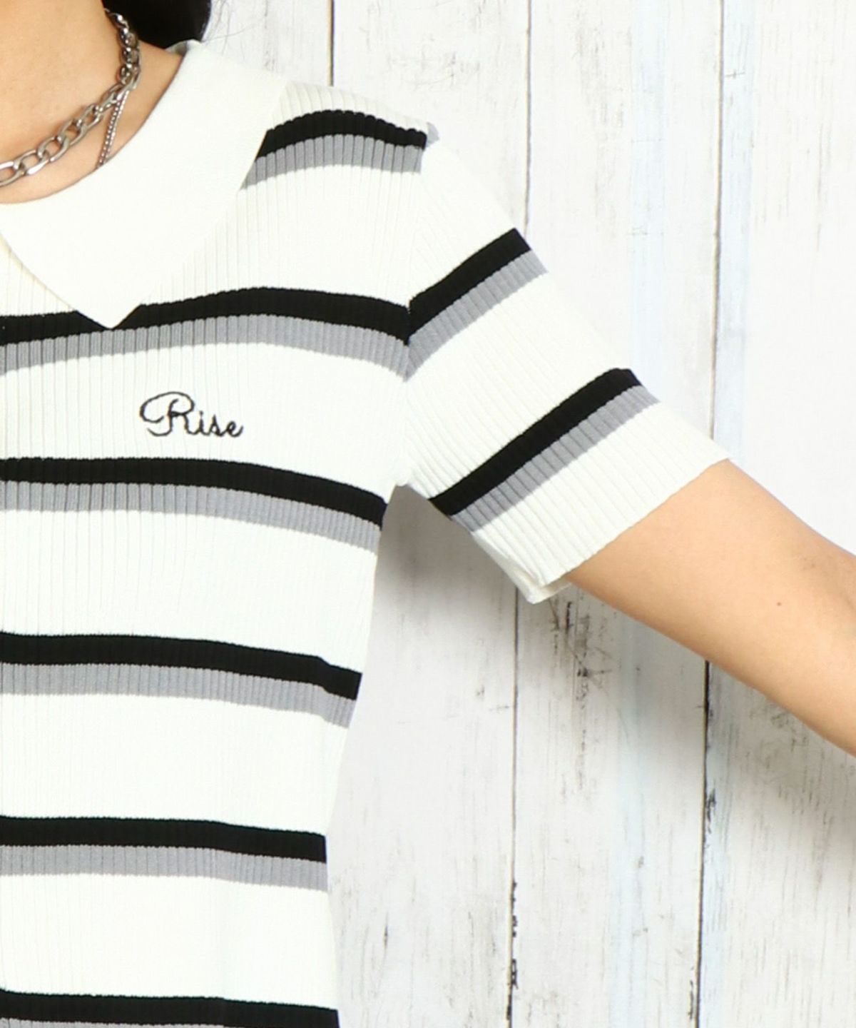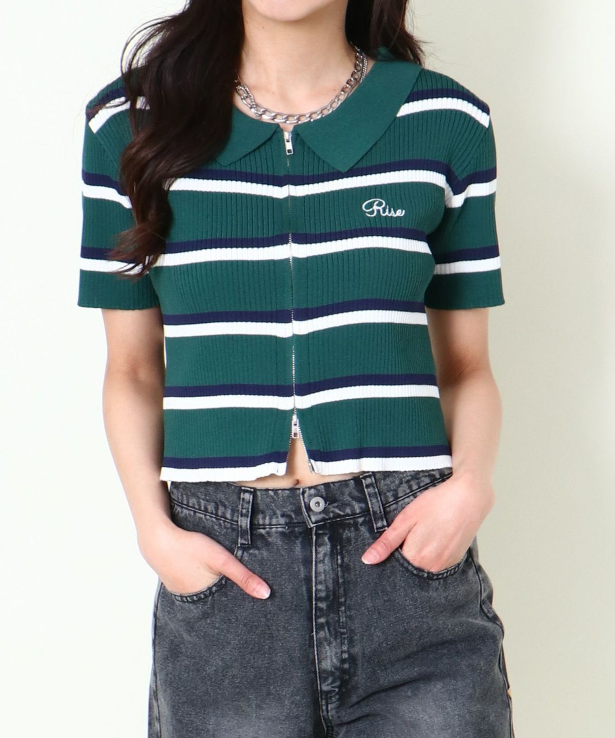 WZIPボーダー半袖カーディガン