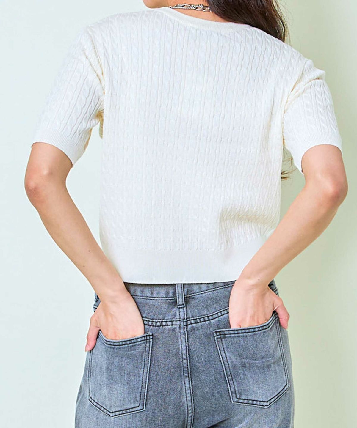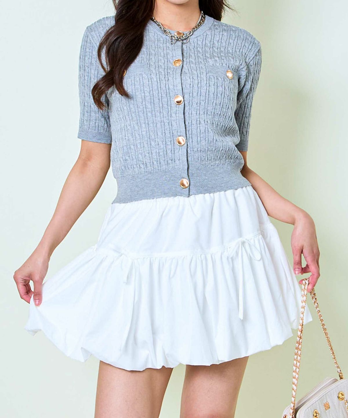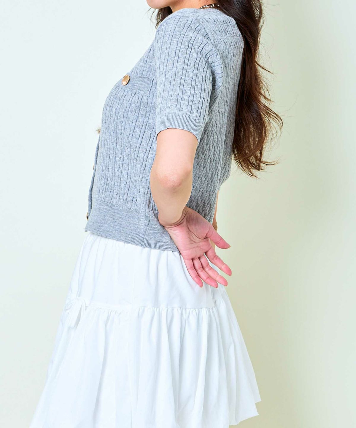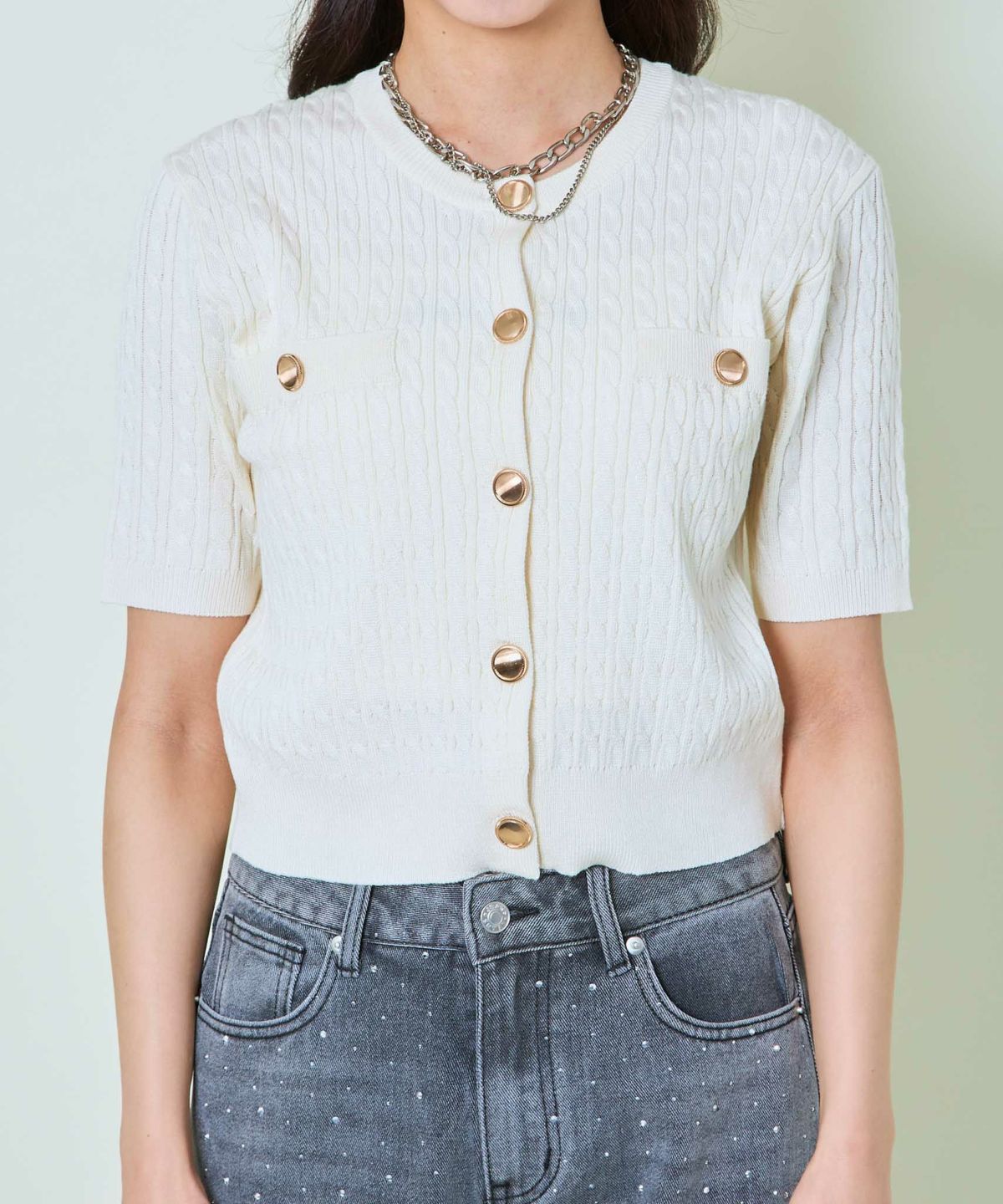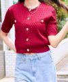《金ボタン×コンパクト》上品見え半袖ニットカーデ