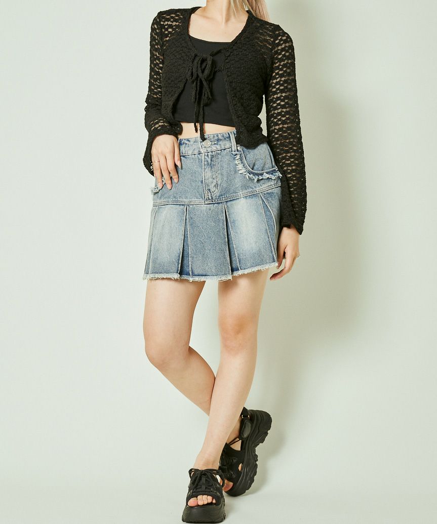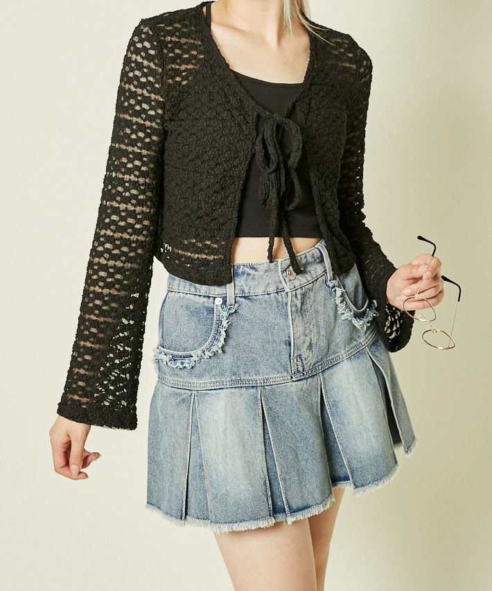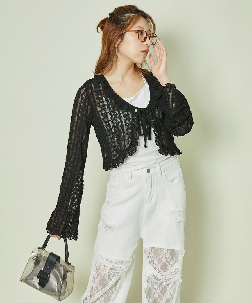 《透け感レース×フレア袖》ショートカーディガン