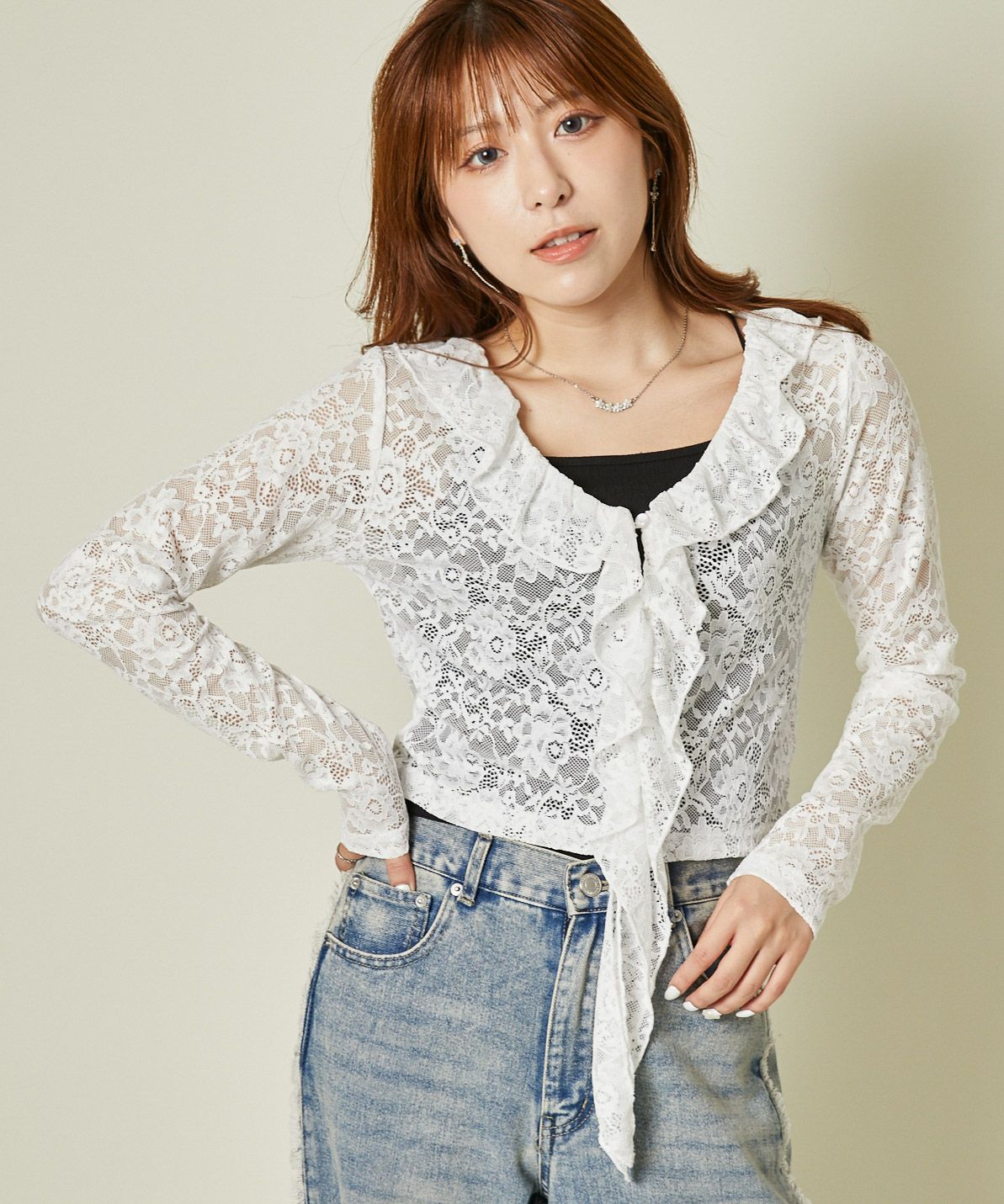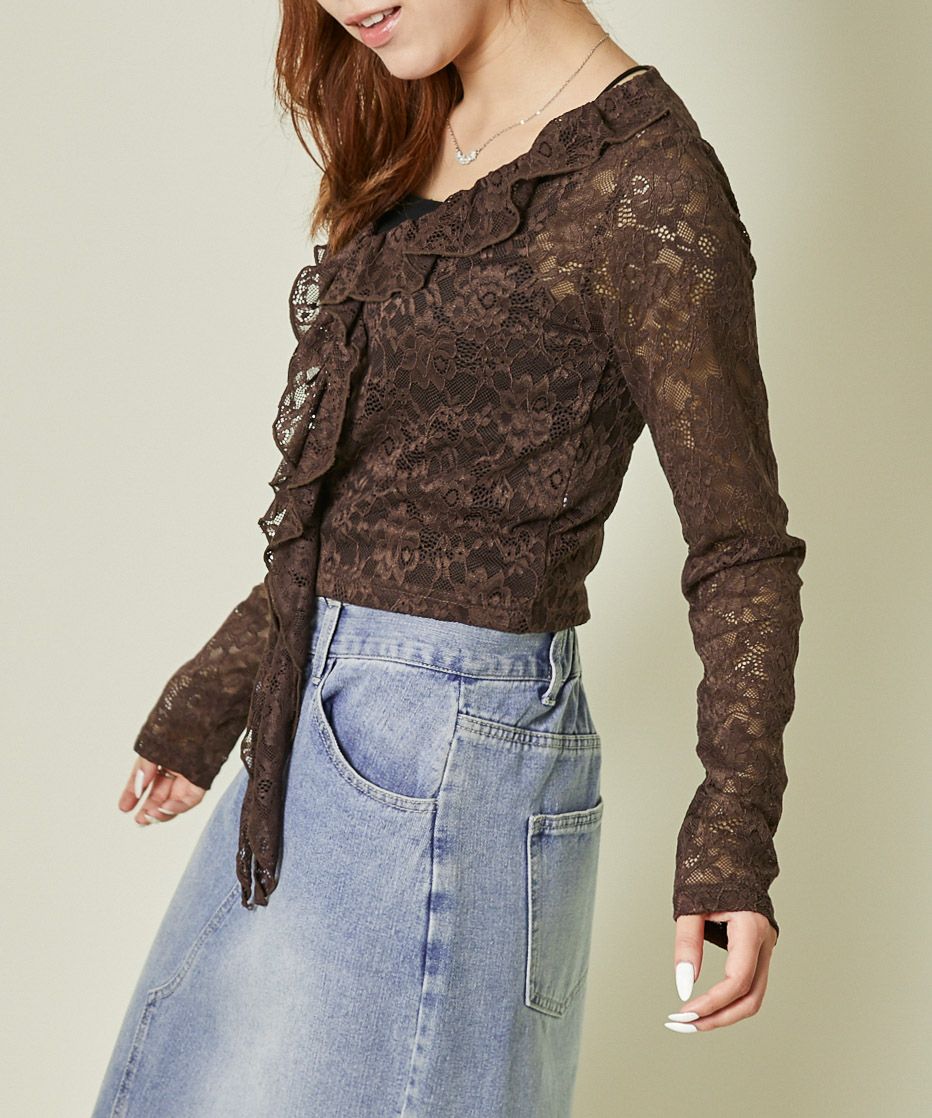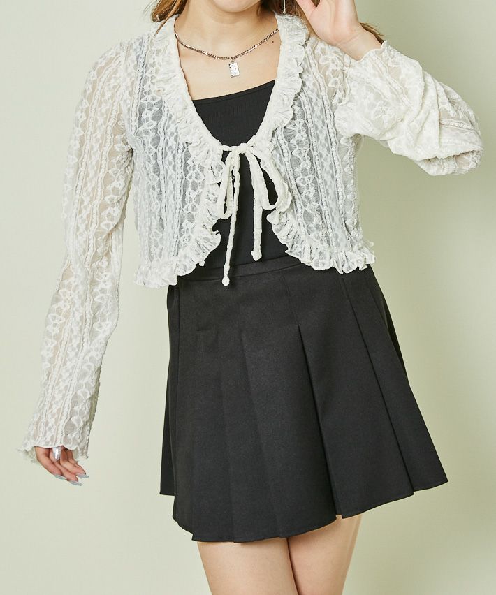 《レース×フリル前結び》レディース カーディガン シアー 羽織り トップス 春夏秋