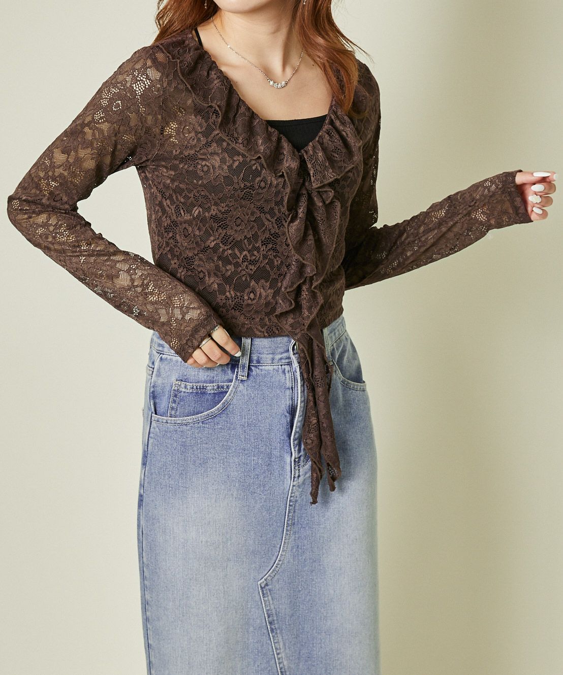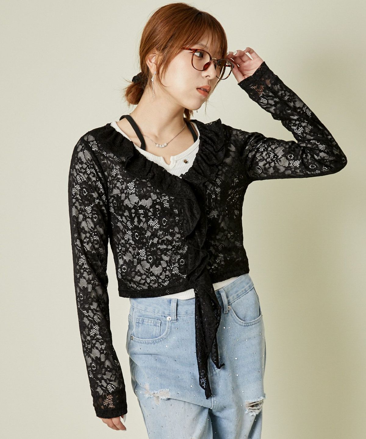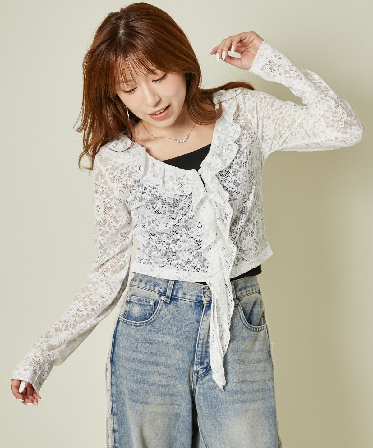 《レース×フリル前結び》レディース カーディガン シアー 羽織り トップス 春夏秋