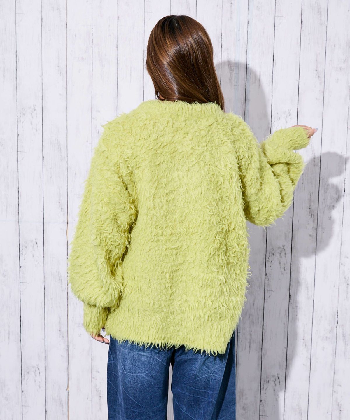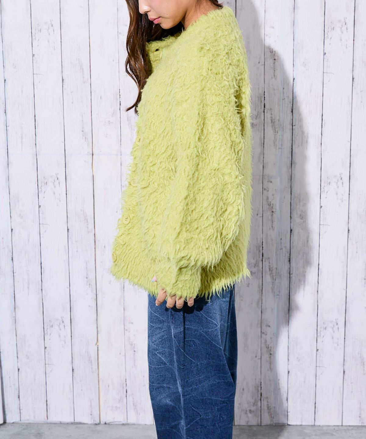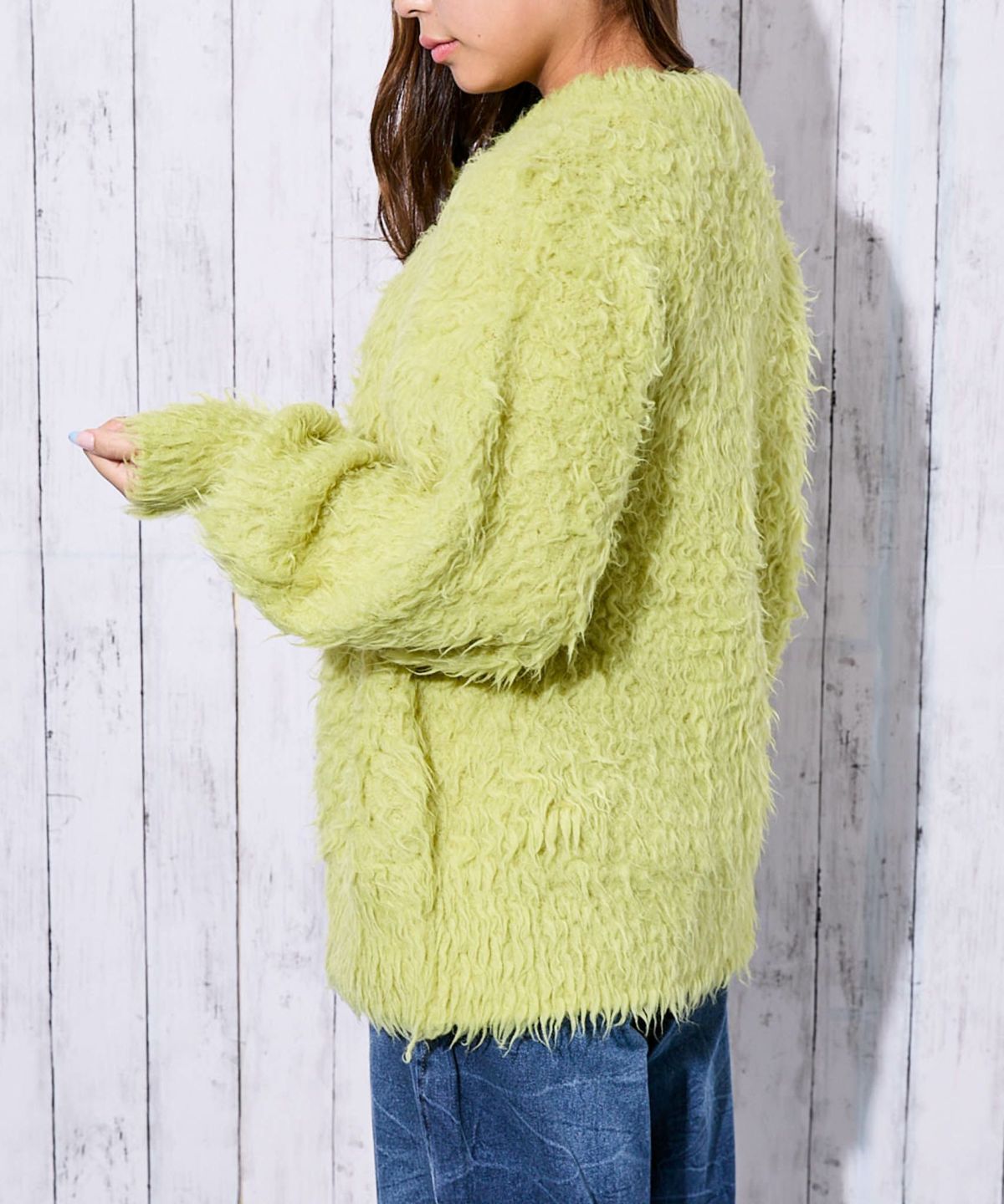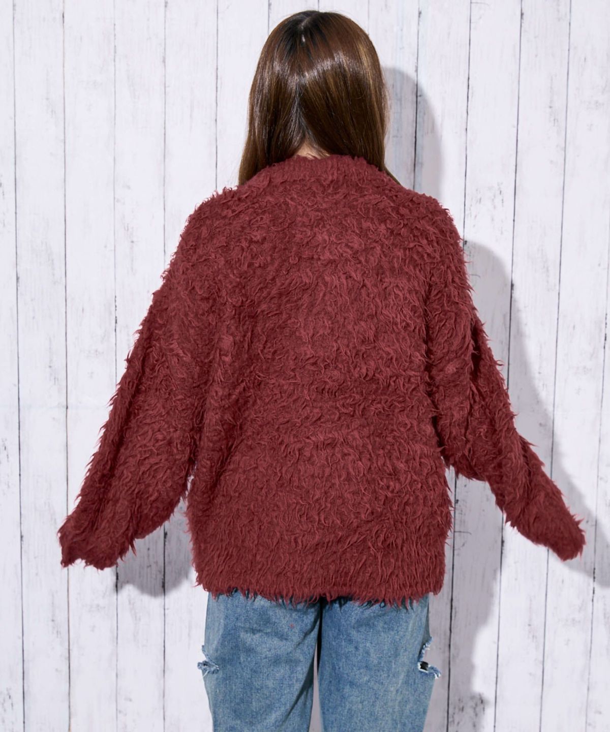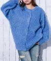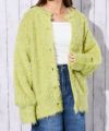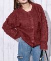 《ふわもこシャギー》レディース クルーネック ニットカーディガン ゆったりシルエット 秋冬