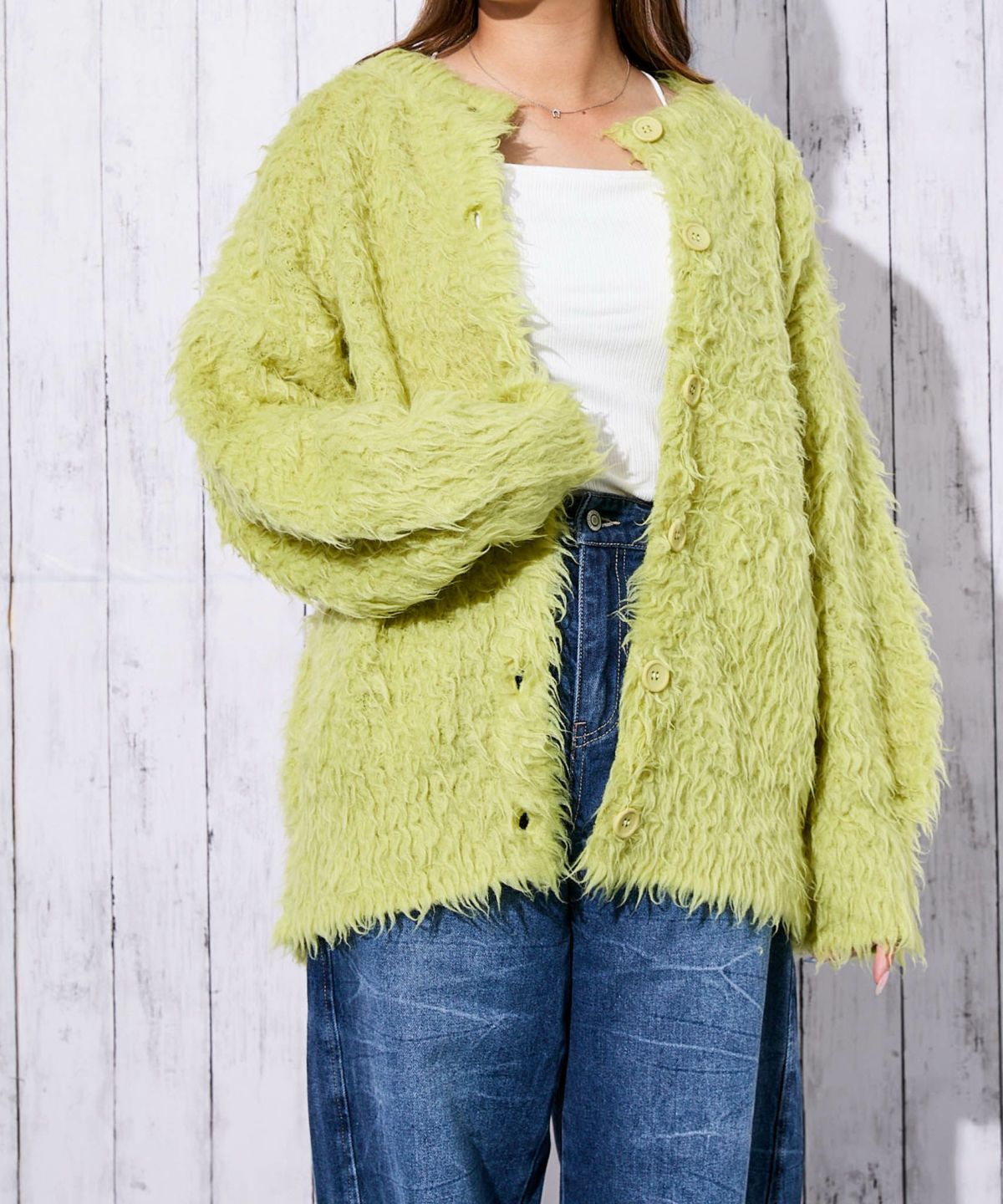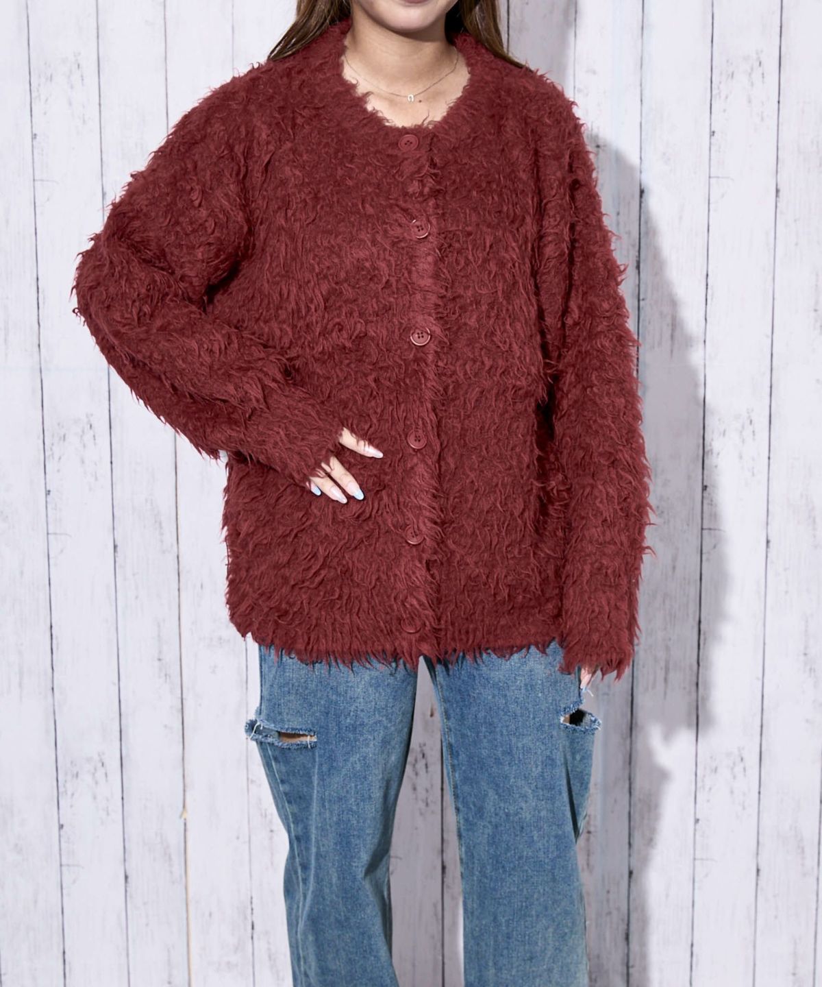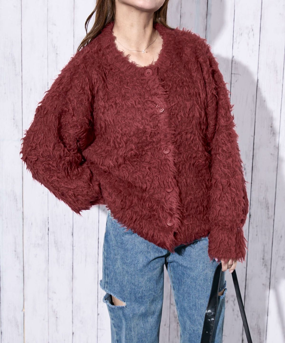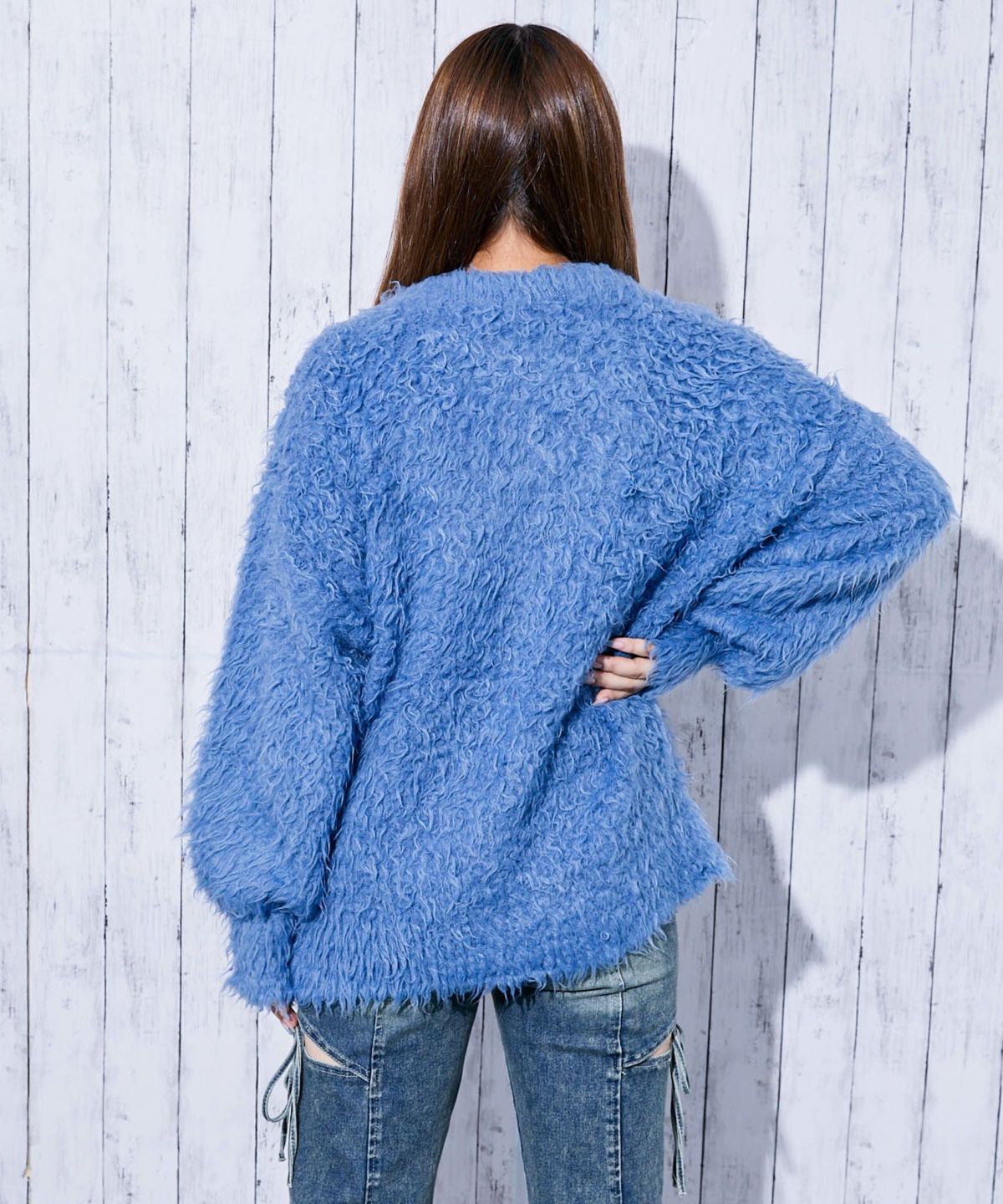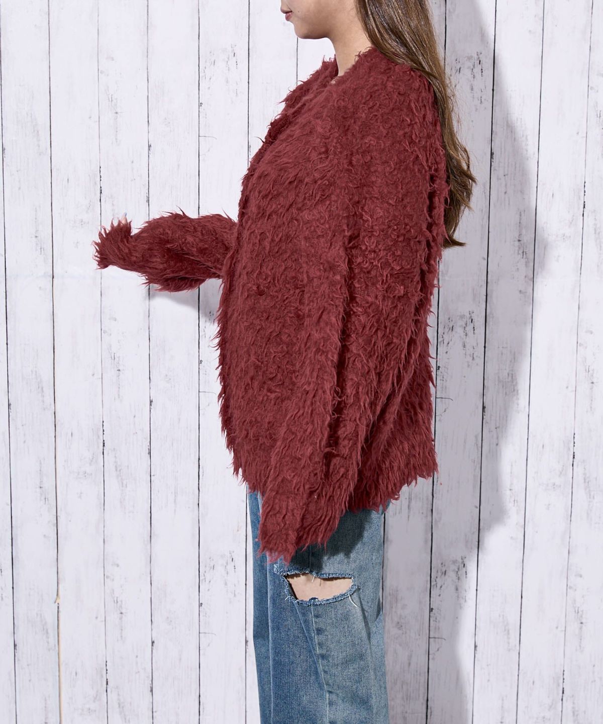 《ふわもこシャギー》レディース クルーネック ニットカーディガン ゆったりシルエット 秋冬