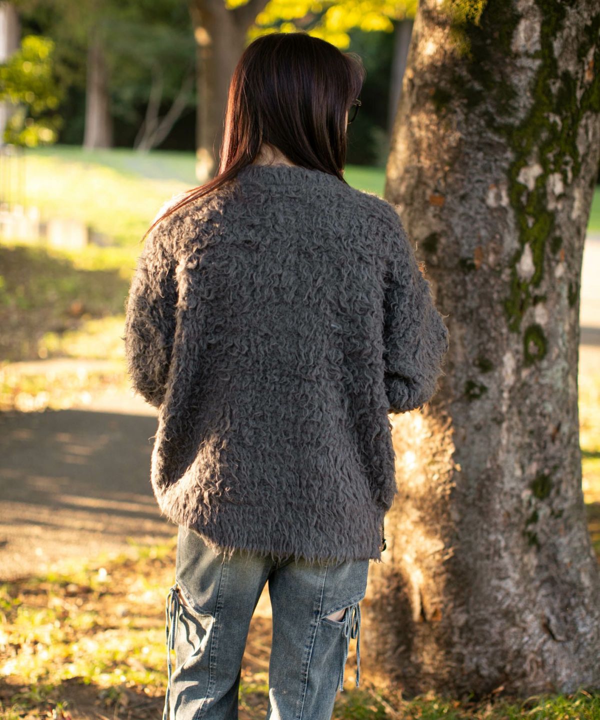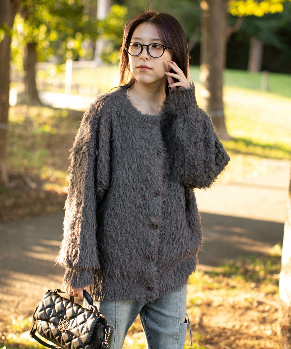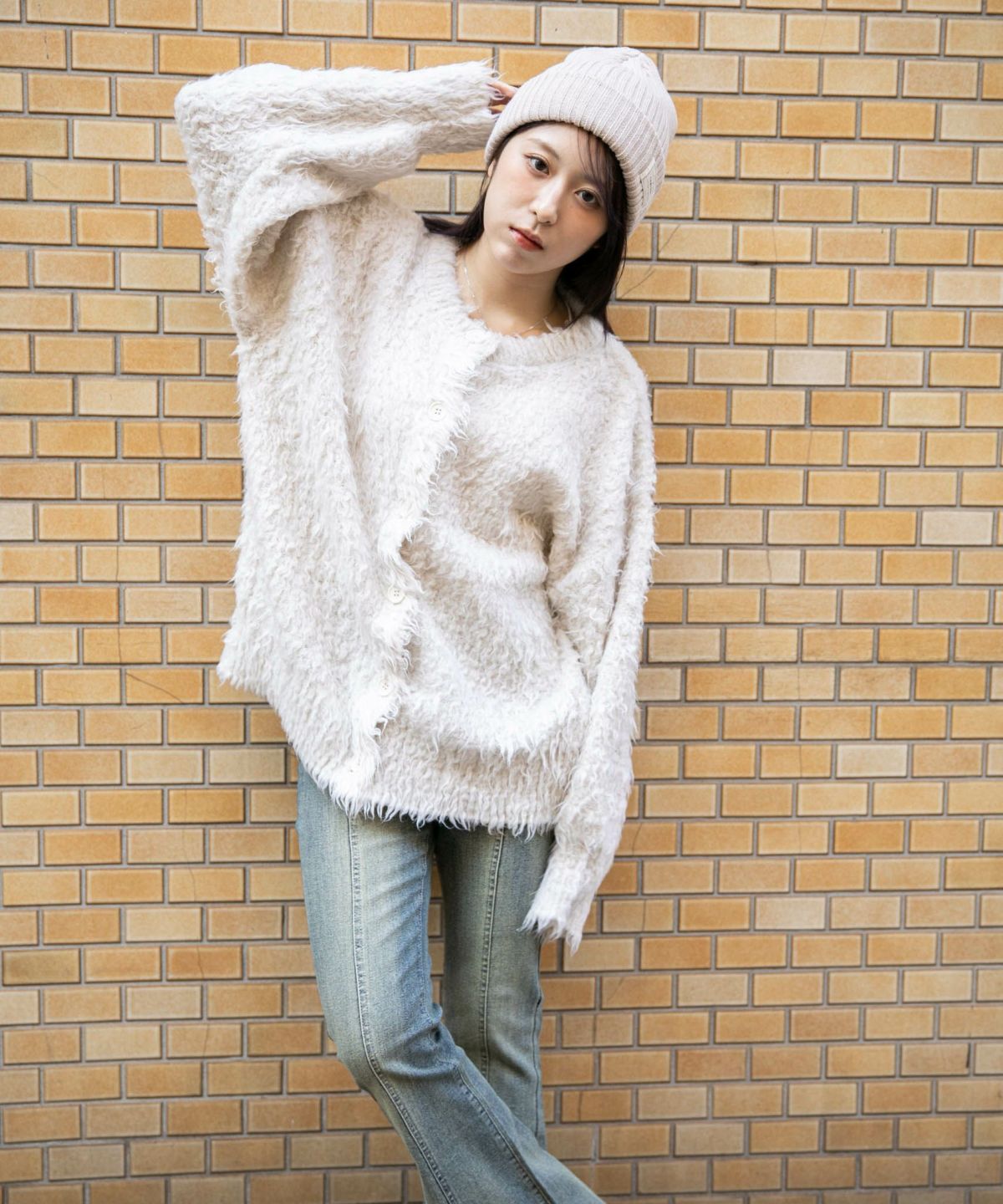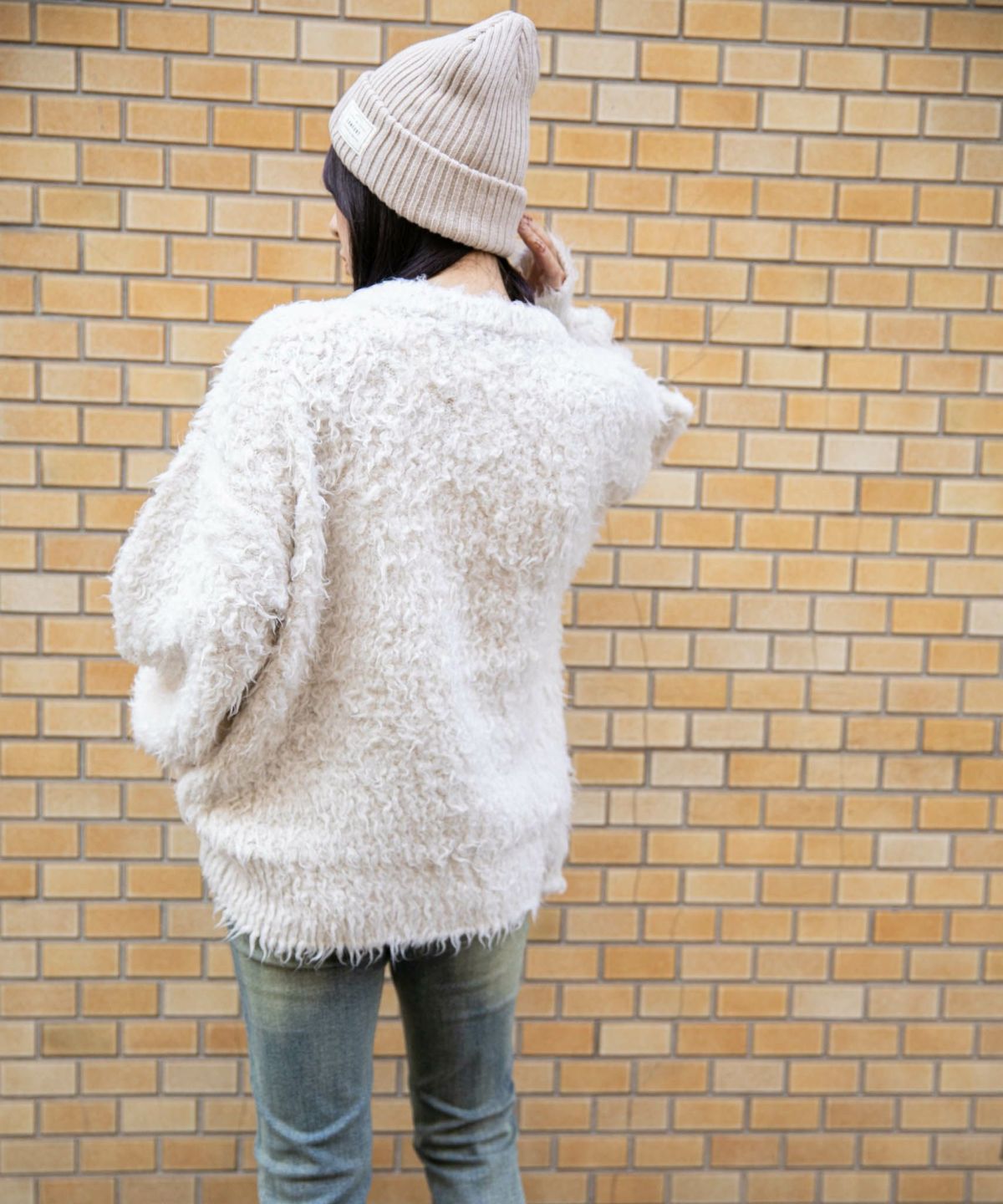 《ふわもこシャギー》レディース クルーネック ニットカーディガン ゆったりシルエット 秋冬