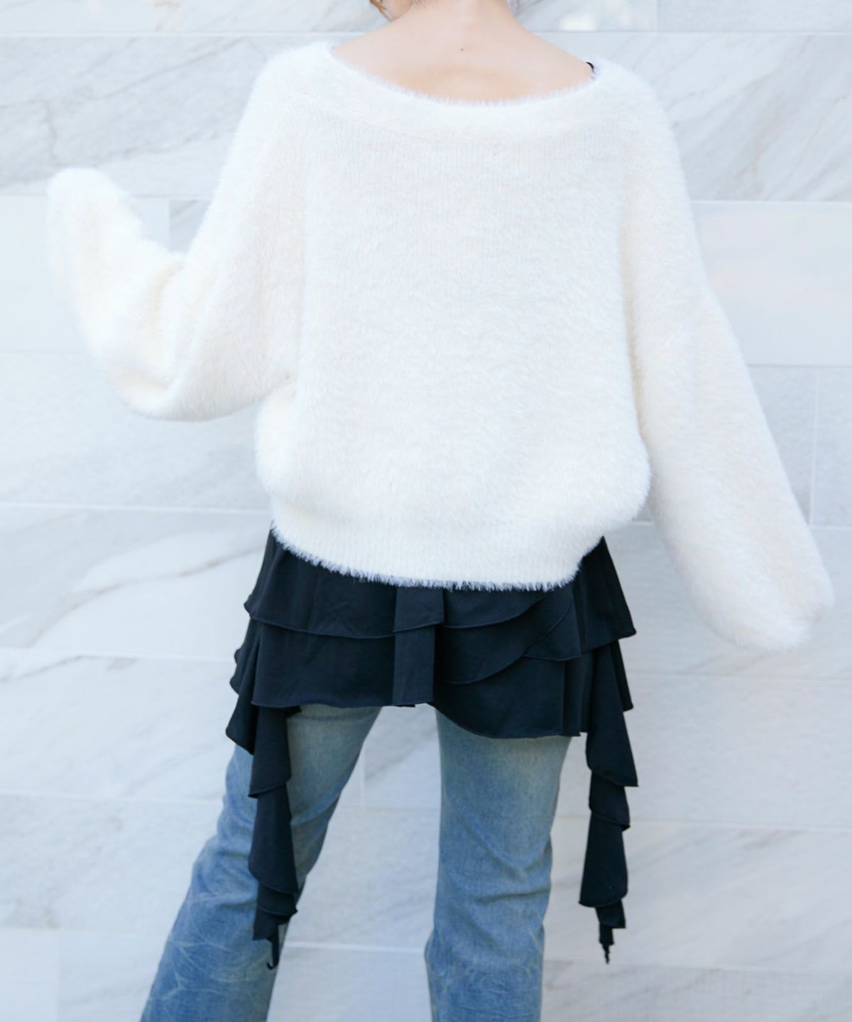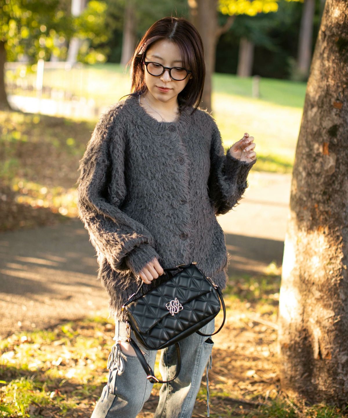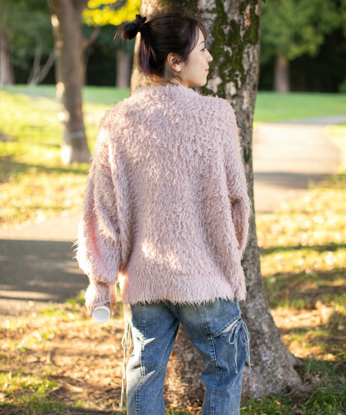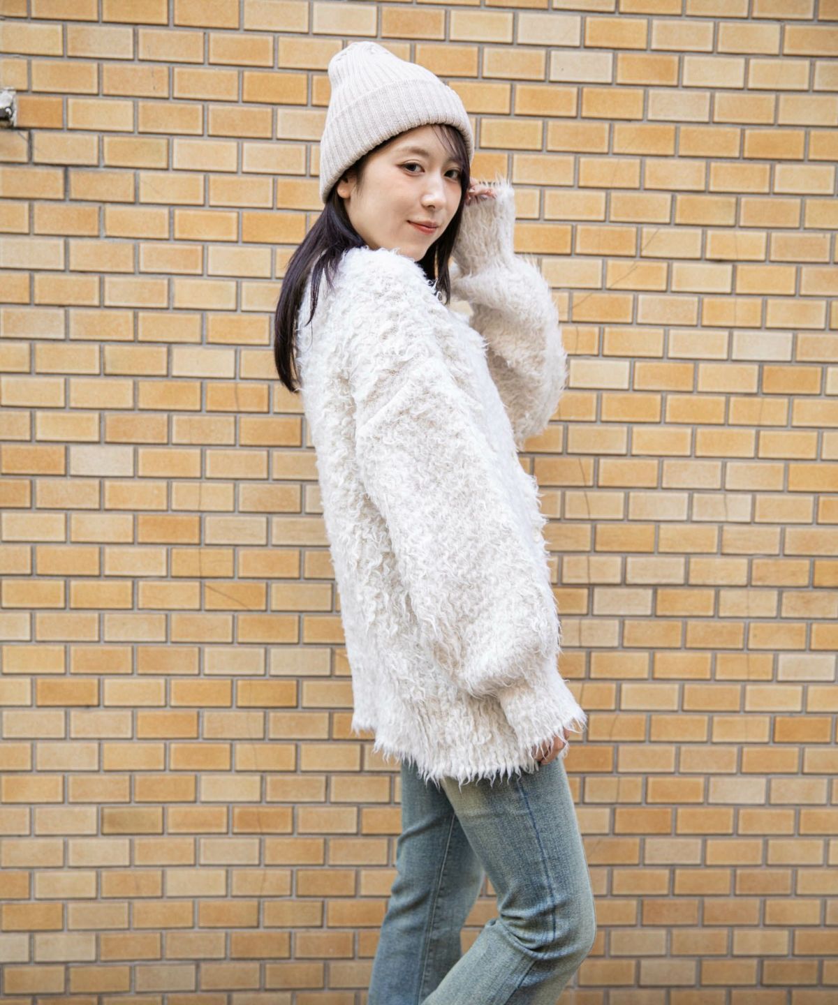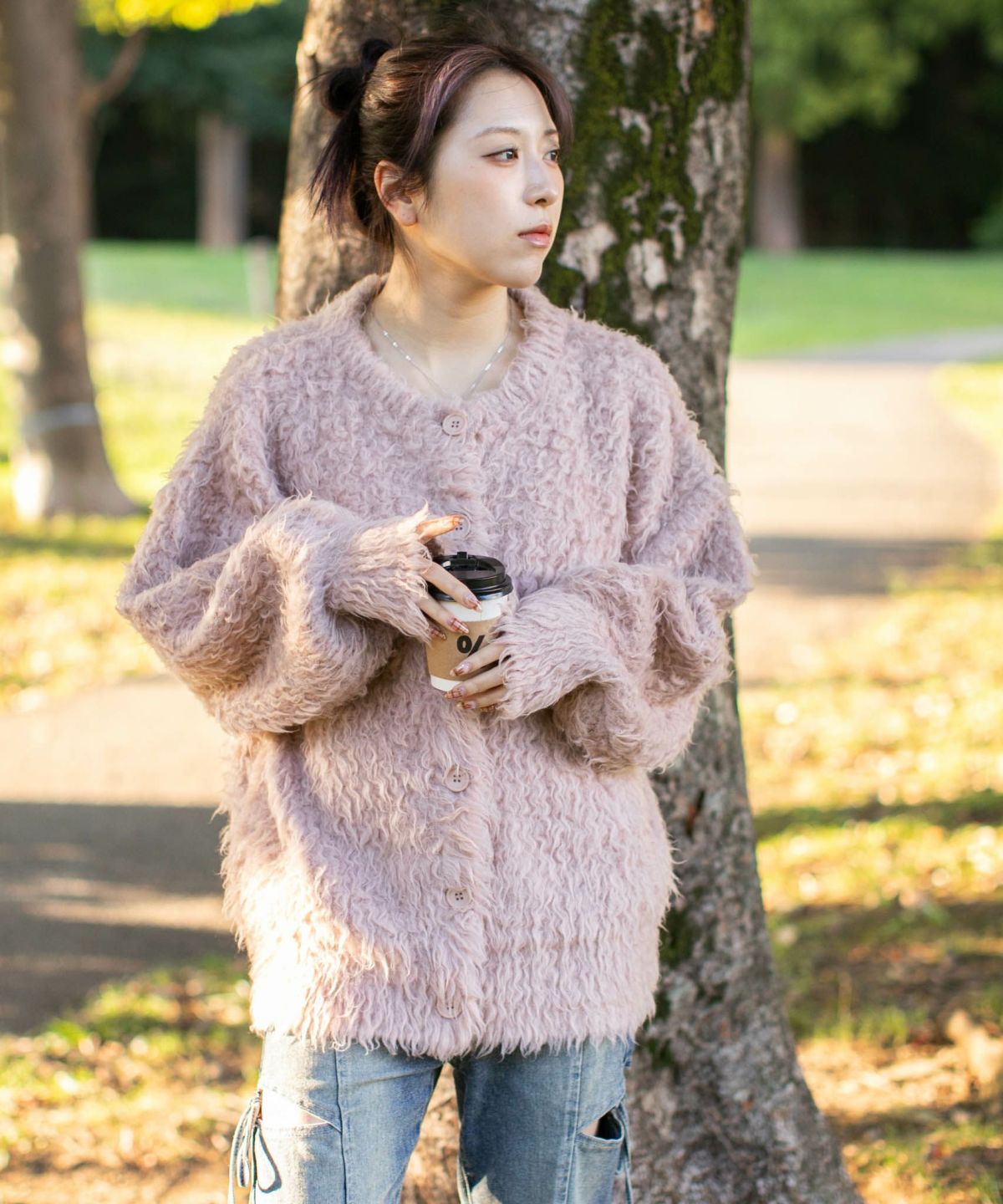 《ふわもこシャギー》レディース クルーネック ニットカーディガン ゆったりシルエット 秋冬