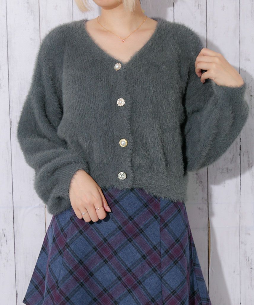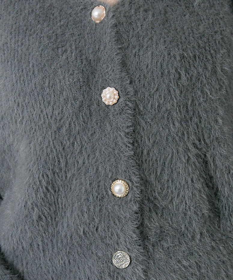 《フェザータッチ×デザインボタンMIX》レディース カーディガン 羽織り コンパクト丈 秋冬