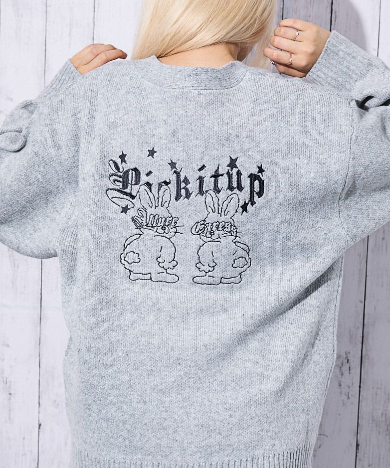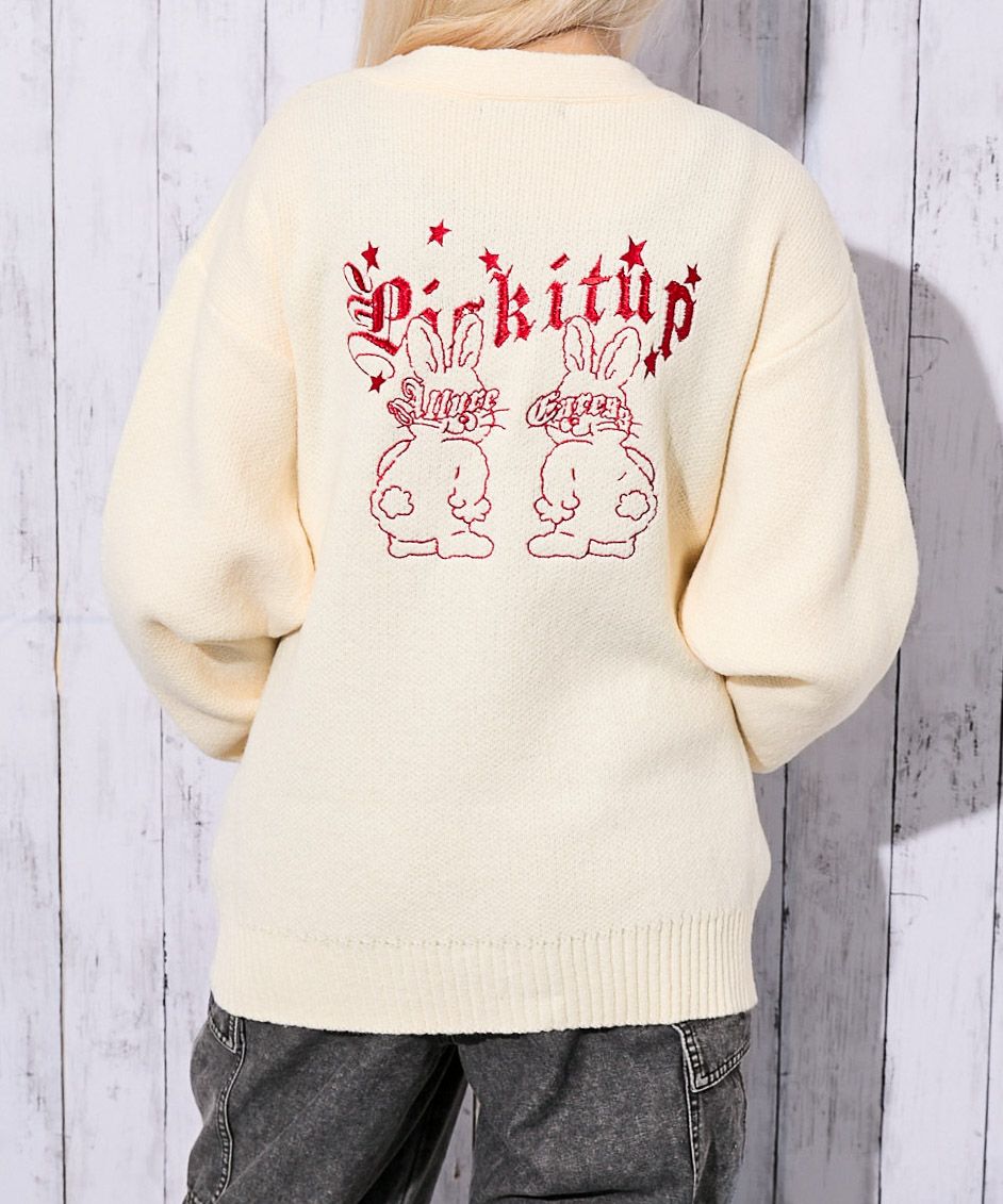 《ラビット刺繍×ゆるシルエット》レディース ニットカーディガン Vネック 羽織り カジュアル 春秋冬