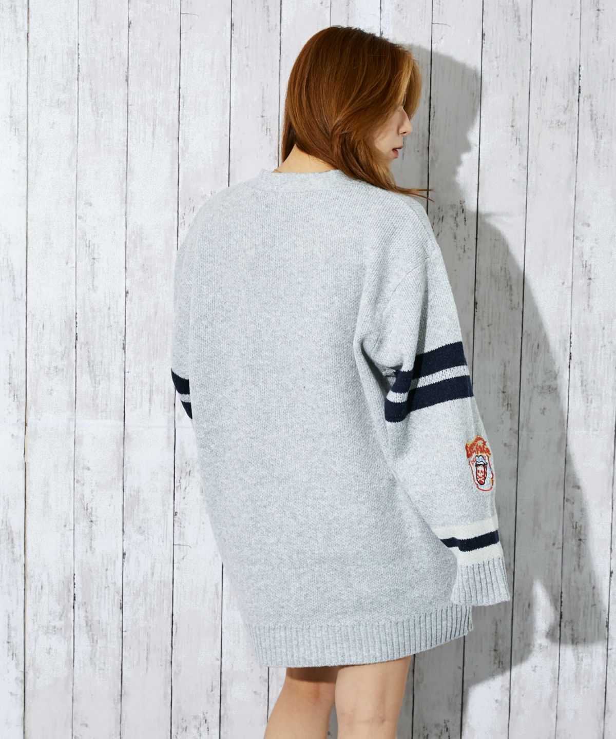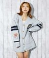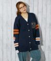 《カレッジワッペン×ライン袖》レディース ニットカーディガン ストリート カジュアル 秋冬