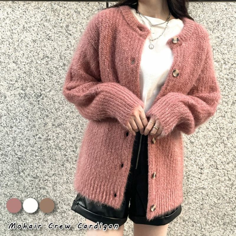 モヘアクルーカーディガン