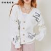 ロゴ刺しゅうデザインがシンプルながらもアクセントになるニットカーディガン。柔らかく、肌触りの良い素材で、リラックスした着心地を提供してくれます◎