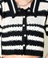 程よい透け感とボーダー柄で甘くなりすぎず、トレンド感もしっかりキープ。衿付きのデザインがきちんと感をプラスしてくれて、ラフになりすぎずバランスの良い仕上がりに。ボタンを留めてトップス風に着ても、羽織りとしてレイヤードしても可愛い◎