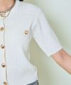 立体感のあるケーブル編みと、上品なゴールドボタンの組み合わせがリッチ感たっぷりで、大人可愛いスタイルを演出します。コンパクトな丈感で、トレンドのハイウエストボトムとの相性もバッチリ◎