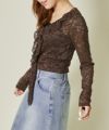 全体に繊細なレースを贅沢に使用し、軽やかで透け感のある印象に。デコルテをきれいに見せてくれるVネックと、フロントの大胆なフリルがアクセントに。やわらかく肌なじみの良い素材感で、着心地も快適。袖までしっかりレース使いされており、細部まで抜かりない仕上がりです。