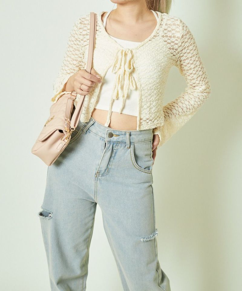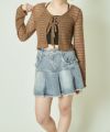 前立てはリボンで結ぶ仕様になっており、甘さを加えながらもカジュアルに着られるバランス感が◎