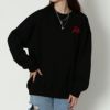 背中に散りばめられたデザインがかわいいカンパニーロゴ裏起毛プルオーバーが登場★裏起毛生地で肌触りふかふか暖かい♪一枚で印象度の高いデザインなのでシンプルなコーデが好きな方にオススメ◎