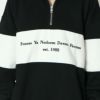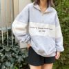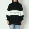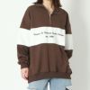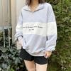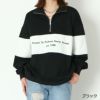 配色がお洒落で太いラインがクールなハーフジップ刺しゅう裏毛プルオーバーが登場★ライン上に英字の刺しゅう入りでキュート♪裏毛素材が肌触り抜群で優しく包んでくれる◎メンズライクなアイテムでストリート風にも着こなせます☆