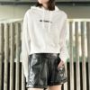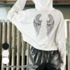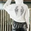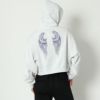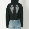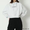 背中の羽が天使のようなデザインの刺しゅうロゴショート裏毛パーカーが登場★ショートタイプの丈感でスタイルアップも期待できるアイテム♪丈感をアピールするならハイウエストのボトムと相性バツグン◎シンプルで大人なルックがシックな印象もあるのでコーデ振り幅の広いアイテムです☆