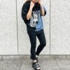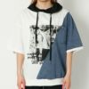 斜めに切り替えたケミカルデニムと転写プリントで個性派ルックに仕上げたパーカーが登場★エッジのきいたロゴデザインもクールなアクセントをプラス♪ボリュームのあるスリーブやオーバーシルエットで華奢見せ効果も期待大◎ショートパンツを合わせてワンピース風にスタイリングするのもおすすめです☆