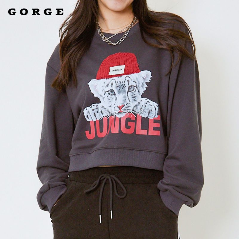 フロントには「Jungle」をテーマにした大胆なプリントが施され、シンプルな裏毛素材に個性をプラス。ショート丈で、ハイウエストボトムスとも相性抜群で、スタイルアップ効果も期待できます。リラックス感と動きやすさを兼ね備えたアイテムです!