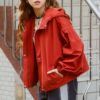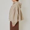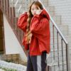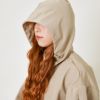 袖にボリュームを持たせたシルエットがポイント。シンプルなデザインながらもトレンド感があり、どんなコーデにも合わせやすい一着。フード付きで実用性も抜群です。