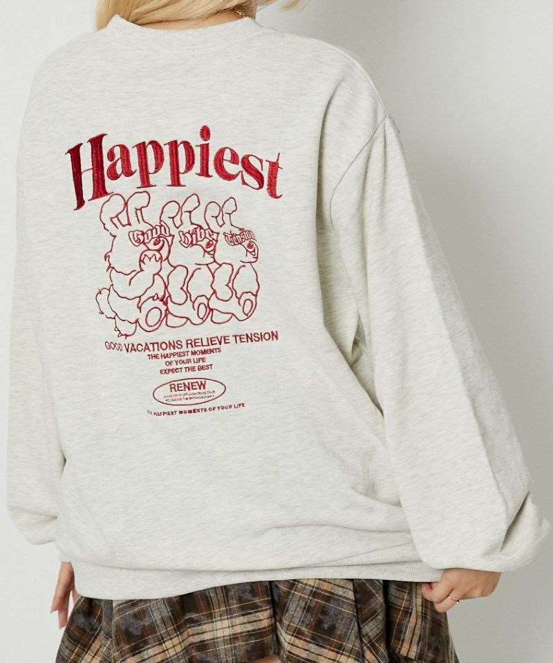 胸元にはワンポイント刺繍、バックには存在感抜群のうさぎロゴ刺繍を施したキャッチーな裏毛スウェット。