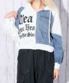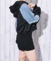 デニムと裏毛の異素材ミックスが目を引くデザイン。