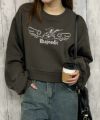 《うさぎロゴ×裏起毛》レディース スウェットプルオーバー ショート丈 秋冬