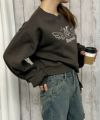 フロントにラインストーンや刺繍で施したうさぎモチーフがポイントの裏起毛スウェット。