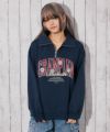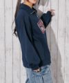 花モチーフの刺繍をあしらったハーフジップスウェット。