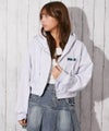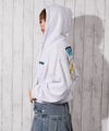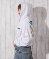 背中に視線が集まる、ポップなデイジーグラフィックが特徴のジップパーカーです。