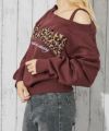 4. 《ワンショル×ロゴデザイン》レディース 裏起毛 スウェットプルオーバー オフショル風 秋冬