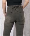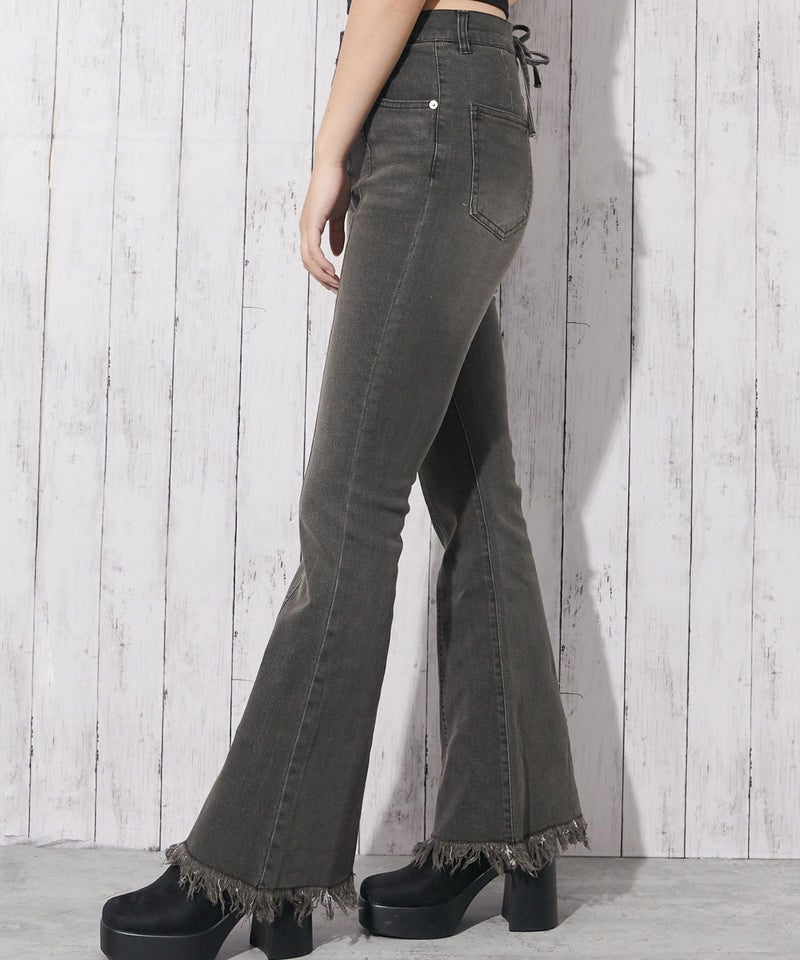 後ろ姿まで抜かりない、バックレースアップが目を引くフレアデニム。