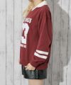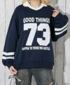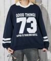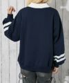 大きめのナンバリングロゴが目を引く、衿付きスウェットプルオーバー。