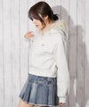 3. 《フェイクファーフード×ロゴ刺繍》レディース 裏起毛 プルパーカー クロップド丈 スウェット 秋冬
