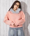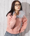 4. 《フェイクファーフード×ロゴ刺繍》レディース 裏起毛 プルパーカー クロップド丈 スウェット 秋冬