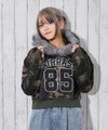 「ファーフード」「カレッジロゴ」「ショート丈」「裏起毛」