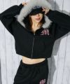 4. 《ファーフード×ロゴ刺繍》レディース 裏起毛ジップパーカー セットアップ対応 秋冬