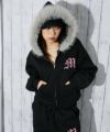 《ファーフード×ロゴ刺繍》レディース 裏起毛ジップパーカー セットアップ対応 秋冬