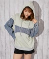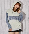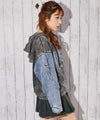 袖部分にデニム切り替えを施した、カジュアル×ストリートムードたっぷりのパーカー。