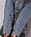 《袖デニム×ロゴで魅せる ストリート映えパーカー》