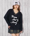 《編み上げデザインでアクセント プリント入り裏毛トレーナー》